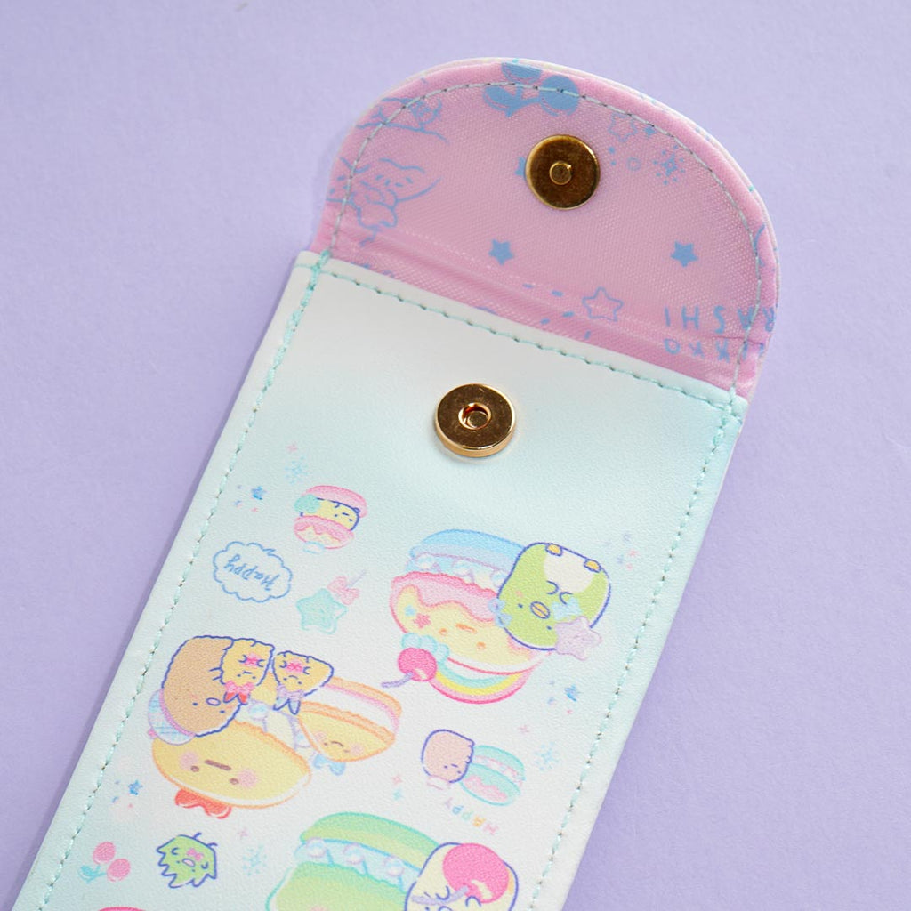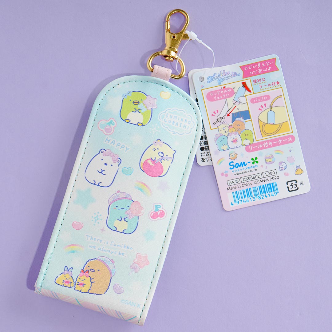 Keep your keys safe with this kawaii key case. It features kawaii prints of huge maracon's with the Sumikko Gurashi cuties. The key has a magnetic button opening so you can easily take your keys out when needed.