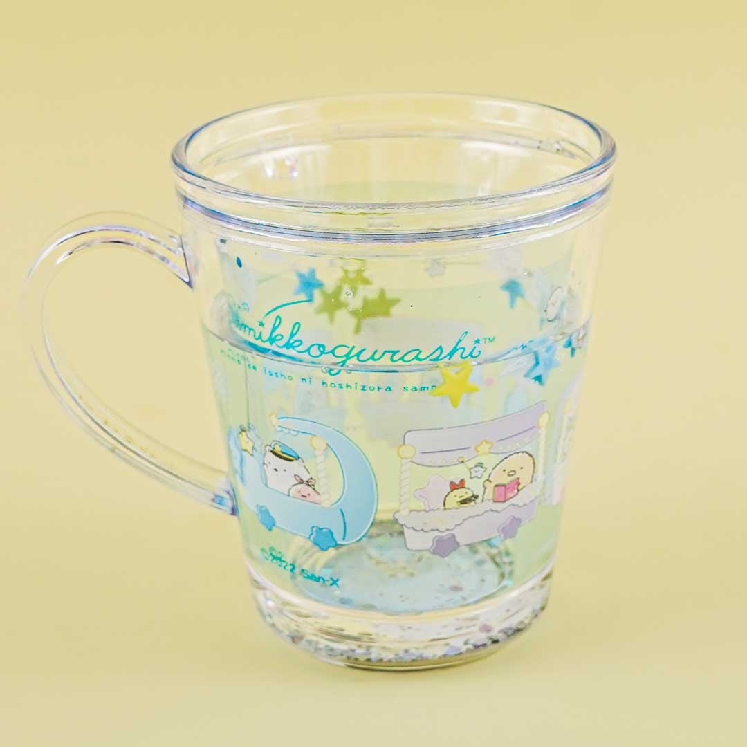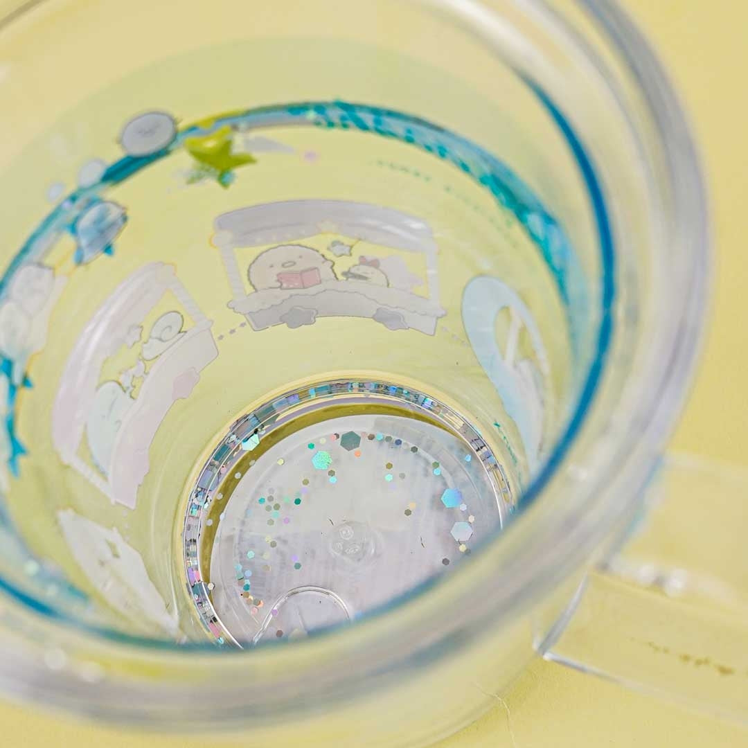 Pour your favorite drink into this super cute cup. It's illustrated with the Sumikko Gurashi gang on a magical ride. This cup also has a layer of water with floating stars and confetti!