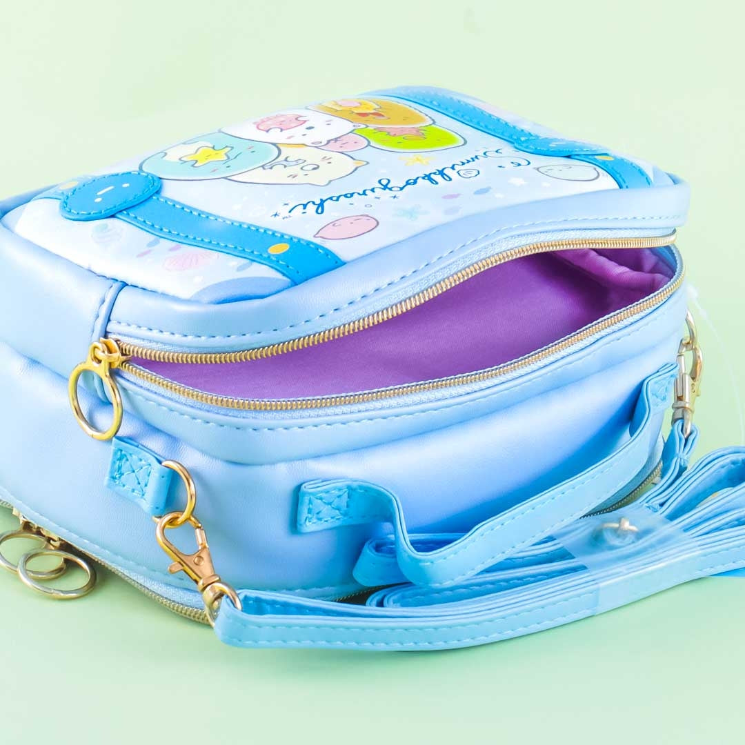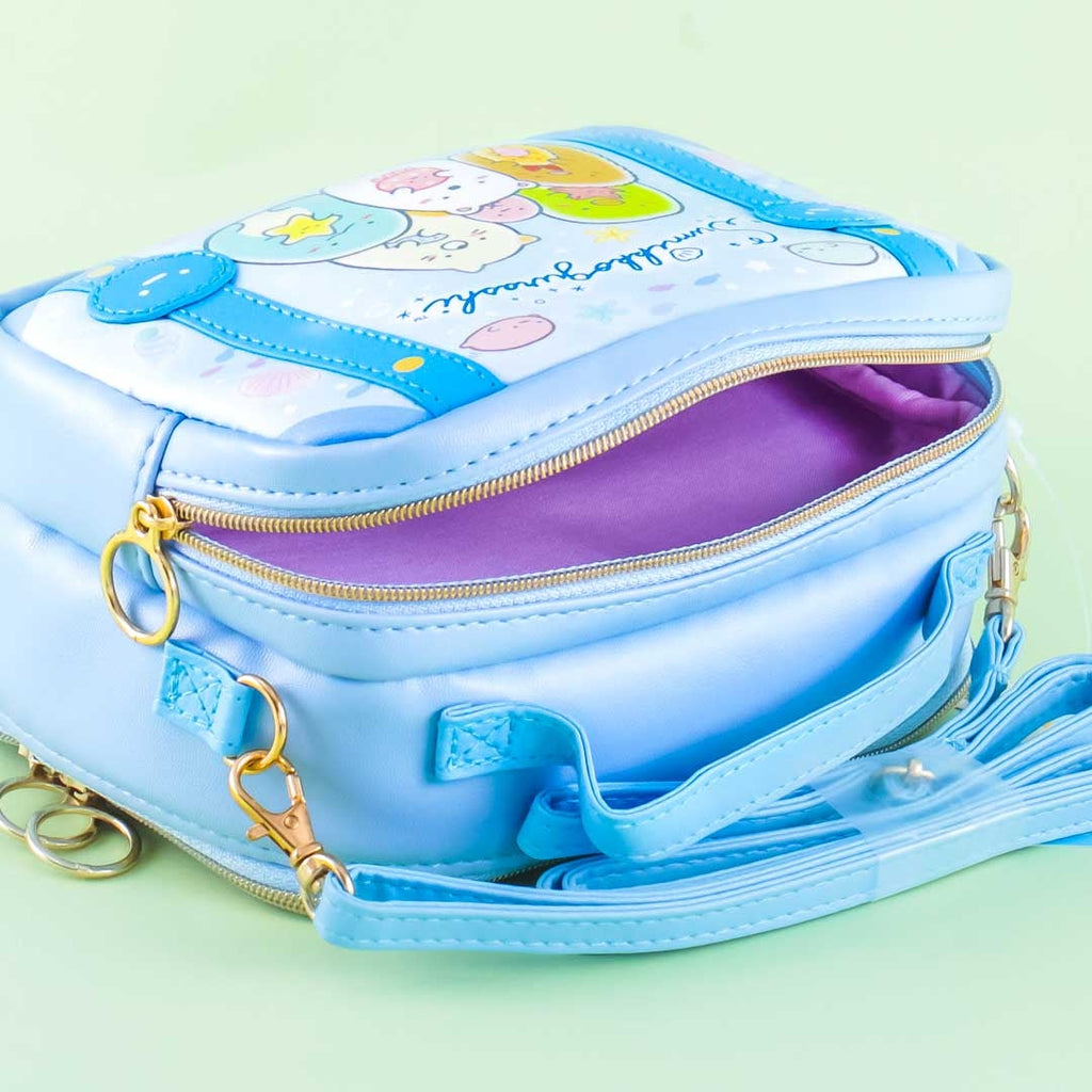 A zippered sling bag featuring Sumikko Gurashi characters with marine creatures