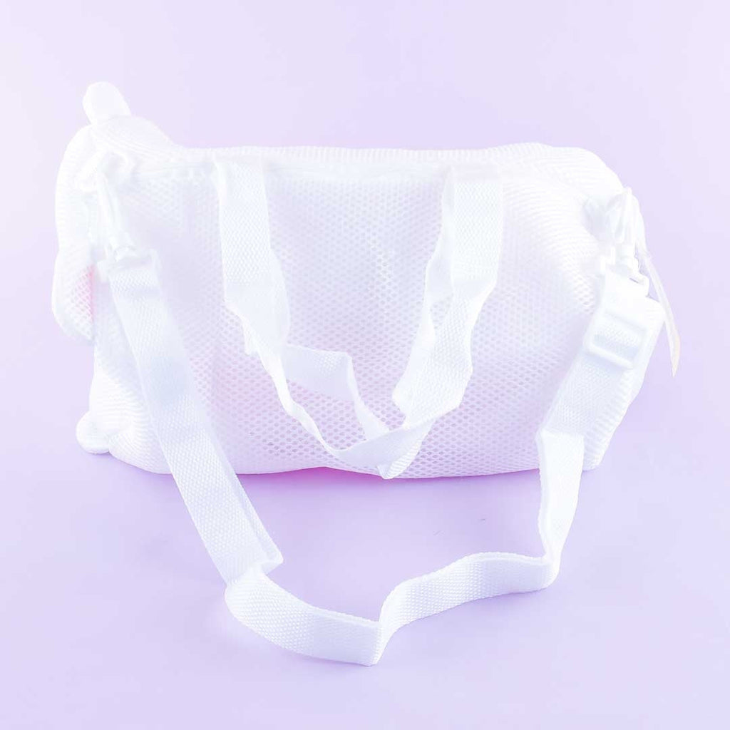 Use this kawaii mesh bag shaped like Shirokuma to store your gym essentials! This zippered Sumikko Gurashi tote has both a detachable and adjustable strap.