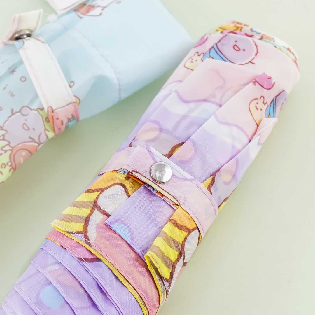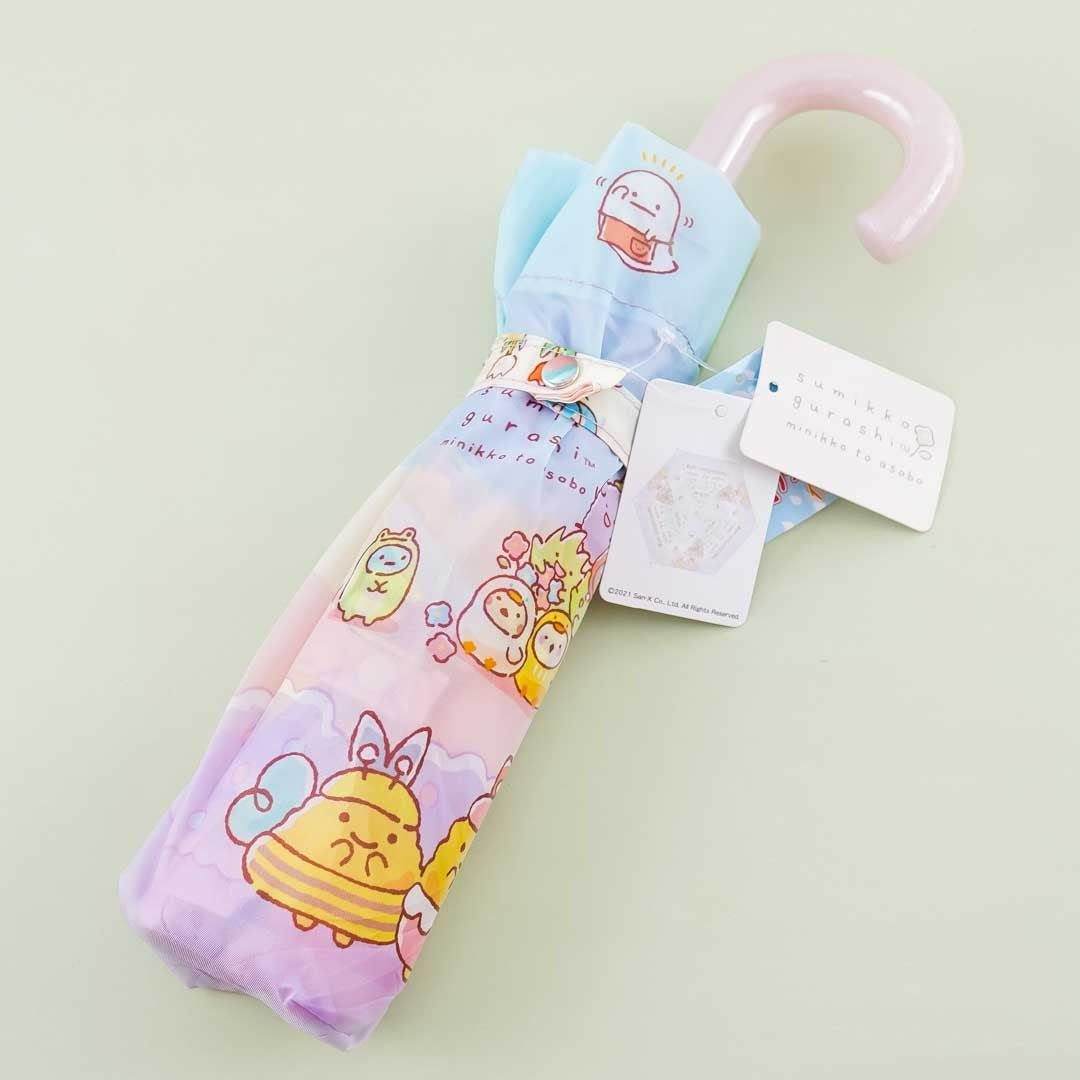 A foldable compact umbrella featuring the Sumikko Gurashi characters having fun under the sun