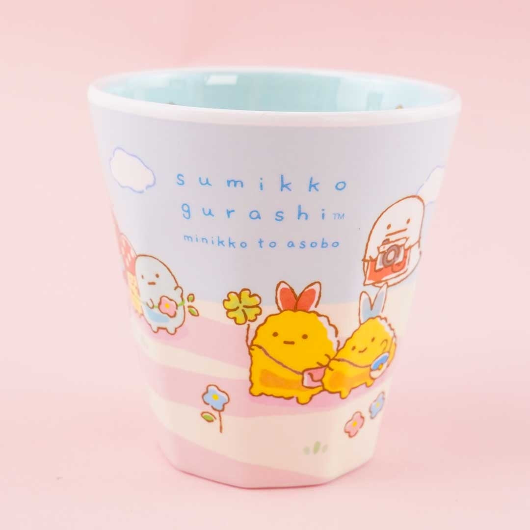 • A kawaii drinking cup featuring the Sumikko Gurashi gang on a tour from the Minikko To Asobo collection