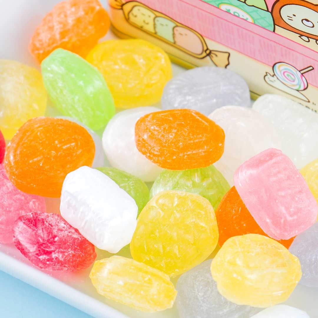 • A tin can of mixed fruit-flavored candy drops featuring Sumikko Gurashi characters