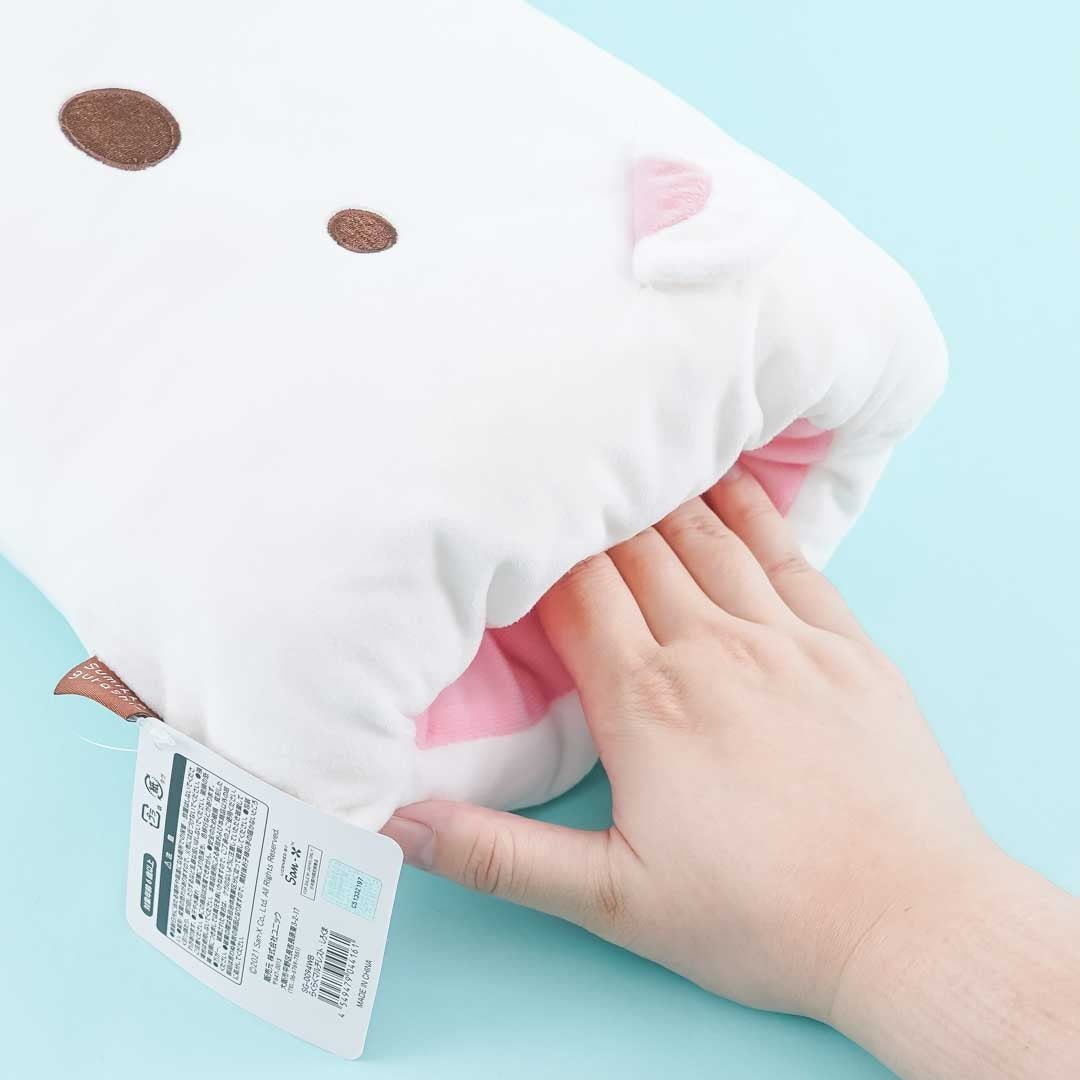This Shirokuma cushion can be used in different ways! You can rest your arms on this cutie from the Sumikko Gurashi while playing games. Place your hands in its hole so you can rest your head on the cushion. It can also be used as a backrest for your seat.