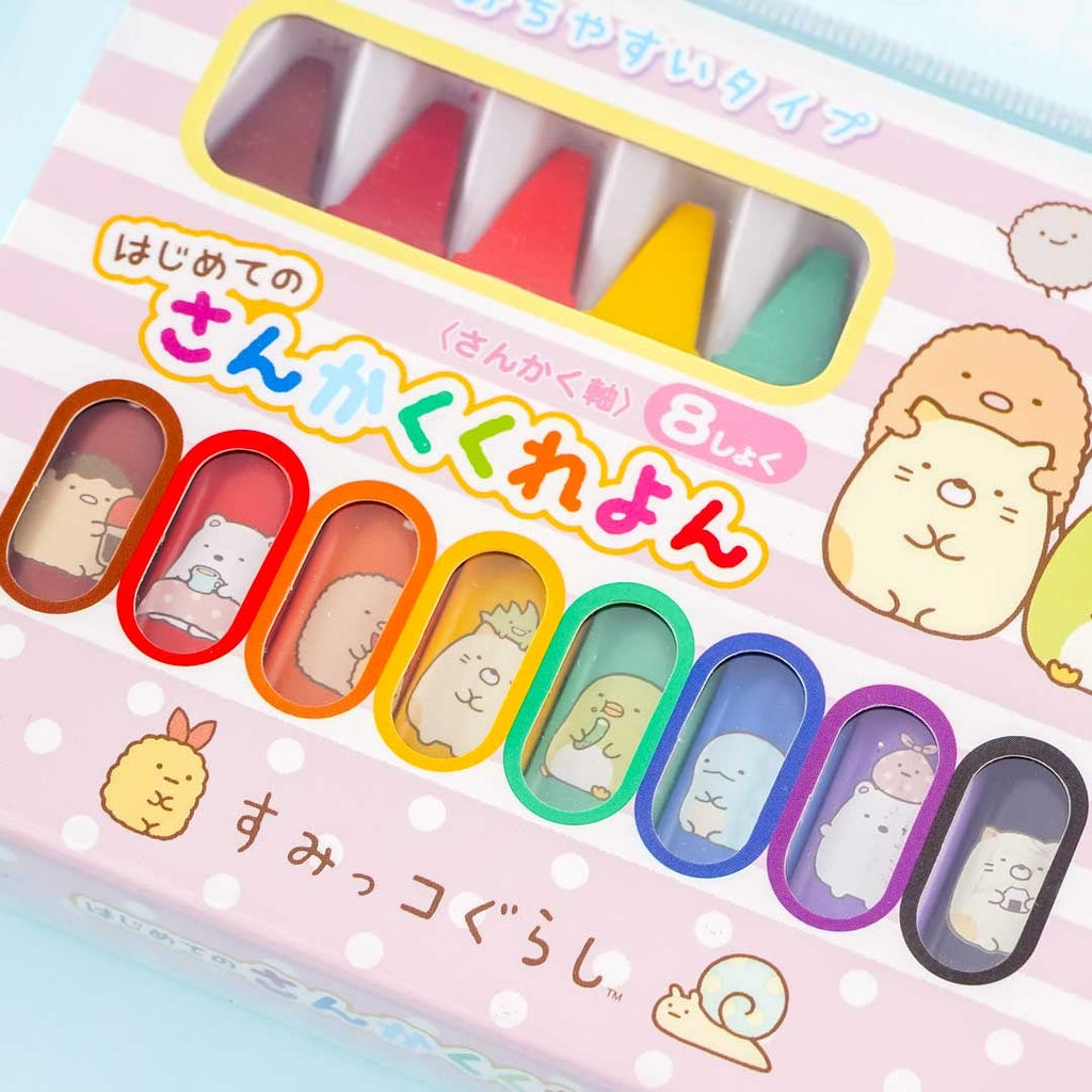 Have fun using these super cute crayons with your favorite coloring book! This set of eight colors features the kawaii Sumikko Gurashi gang! Each non-toxic crayon has a thick and triangular shaft — making it easier to grip. Highly recommended for young children who are first-time crayon users.
