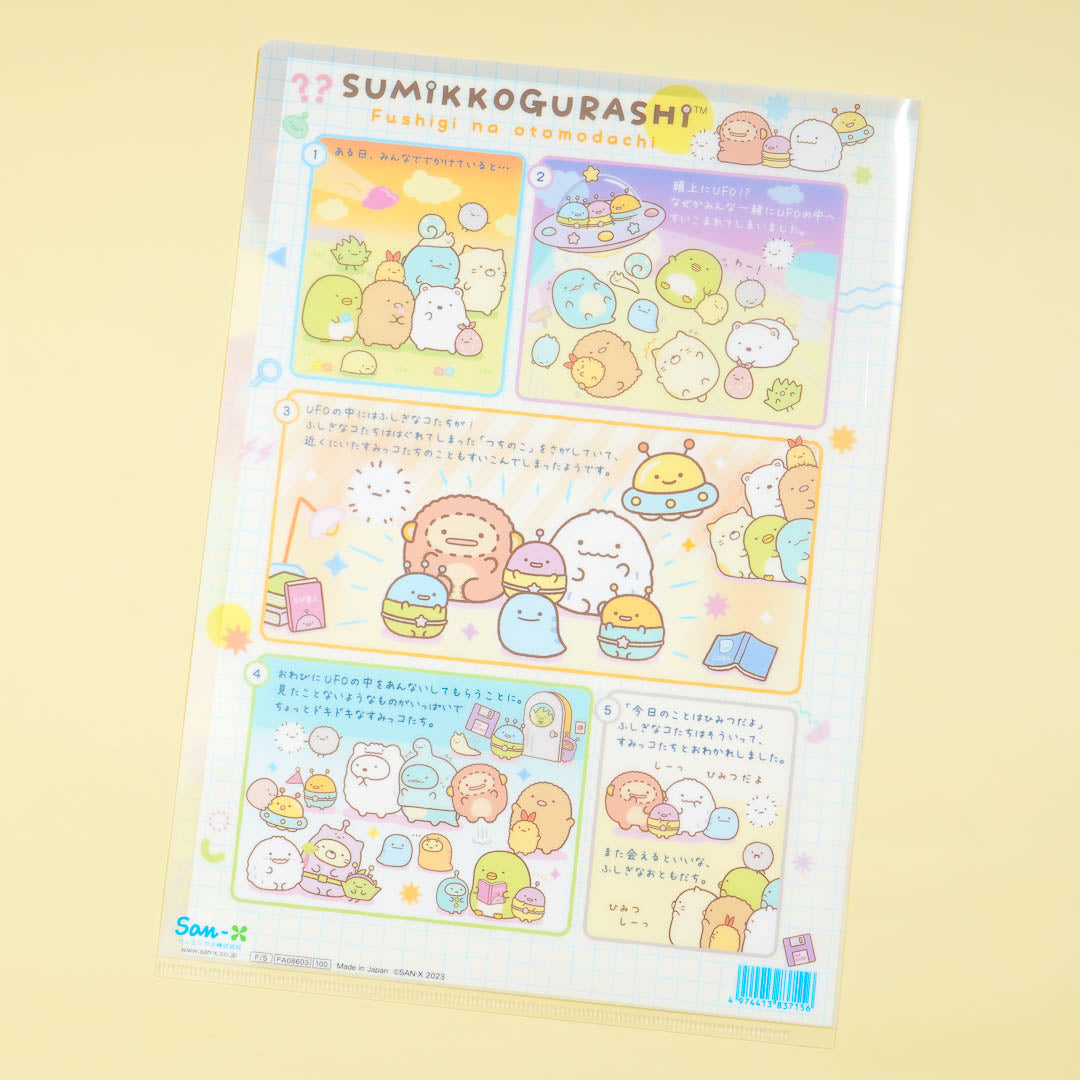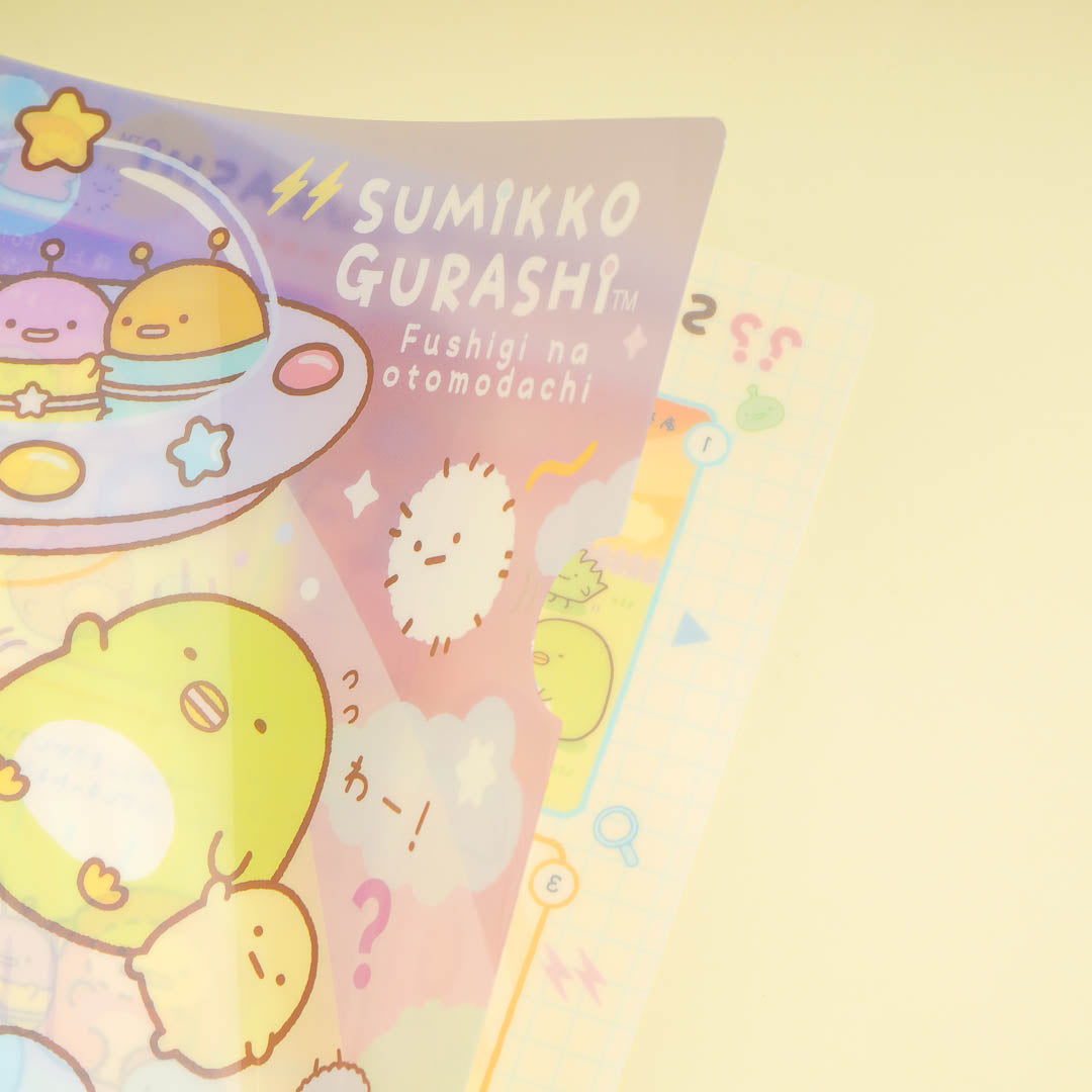 This kawaii A4-sized folder is covered with cute prints of Sumikko Gurashi and their new mysterious friends from outer space. Use it to keep your important documents! This design comes from the "Fushigi na Otomodachi" or Mysterious Friends series.