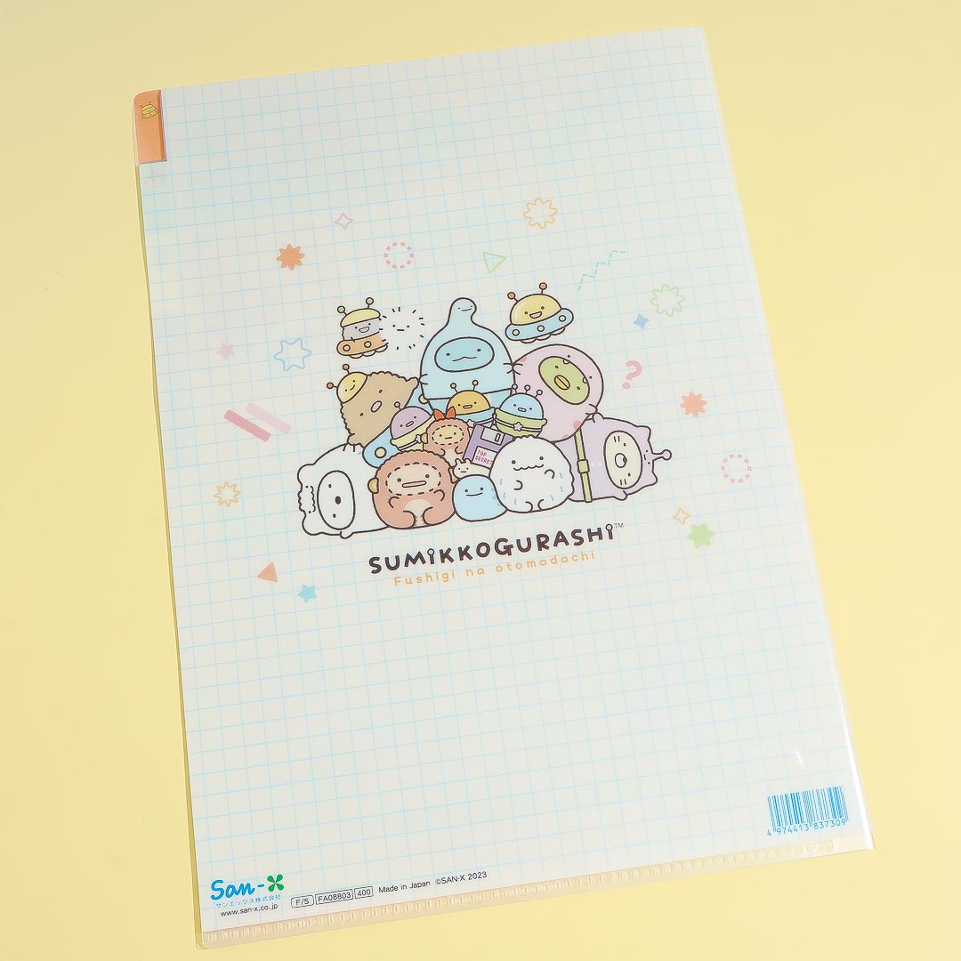 This cute clear file folder is illustrated with the Sumikko Gurashi hanging out with their strange friends from space! It comes from the new Sumikko Gurashi "Fushigi na Otodomachi" or "Mysterious Friends" series. Add it to your school supply haul.