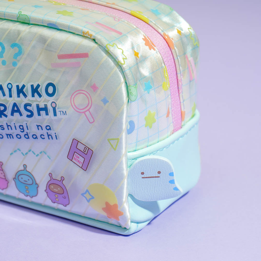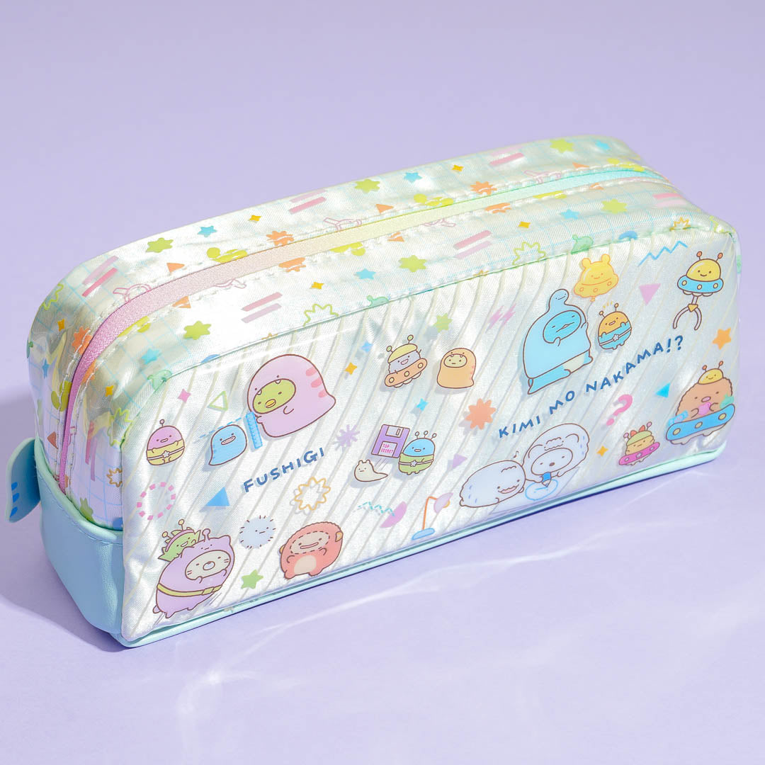 This cute pencil case is covered in prints of the Sumikko Gurashi gang dressed up as aliens while hanging out with their strange friends from outer space. It comes from the Sumikko Gurashi "Fushigi an Otomodachi" or "Mysterious Friends" series. Use it to store your pens, pencils, and other things.