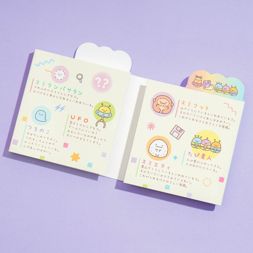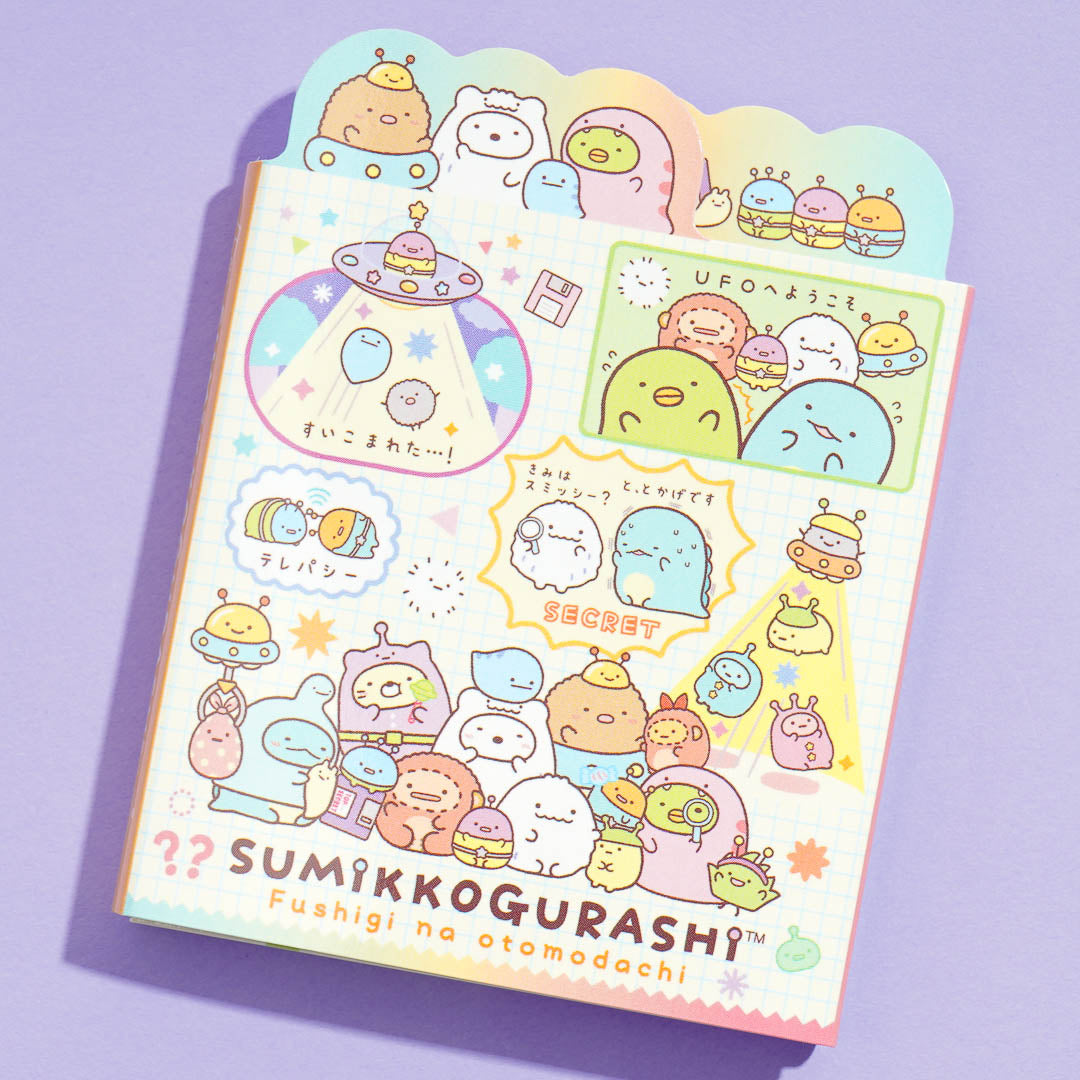 This super cute set of mini notepads features kawaii prints of Sumikko Gurashi being welcomed into a UFO by their mysterious friends! It comes in a folding booklet and has four different designs. Use this to write your important reminders.