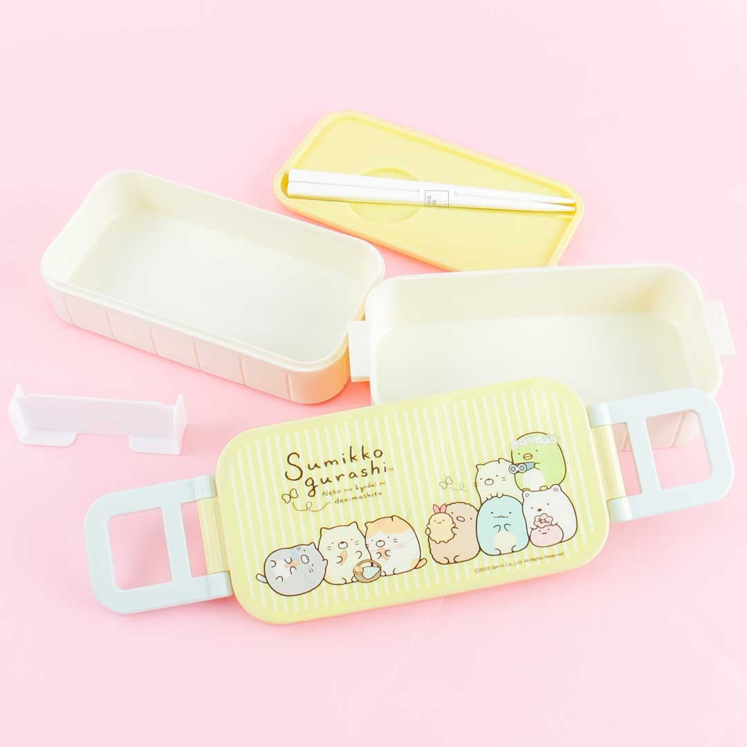 Pack a healthy and hearty meal using this super cute bento box featuring the Sumikko Gurashi gang playing with Neko's friends! It has two stackable layers, a pair of chopsticks, and a detachable divider. Make sure to remove the lid and separate each layer before you heat meals in the microwave! This bento box is not safe to clean in the dishwasher.