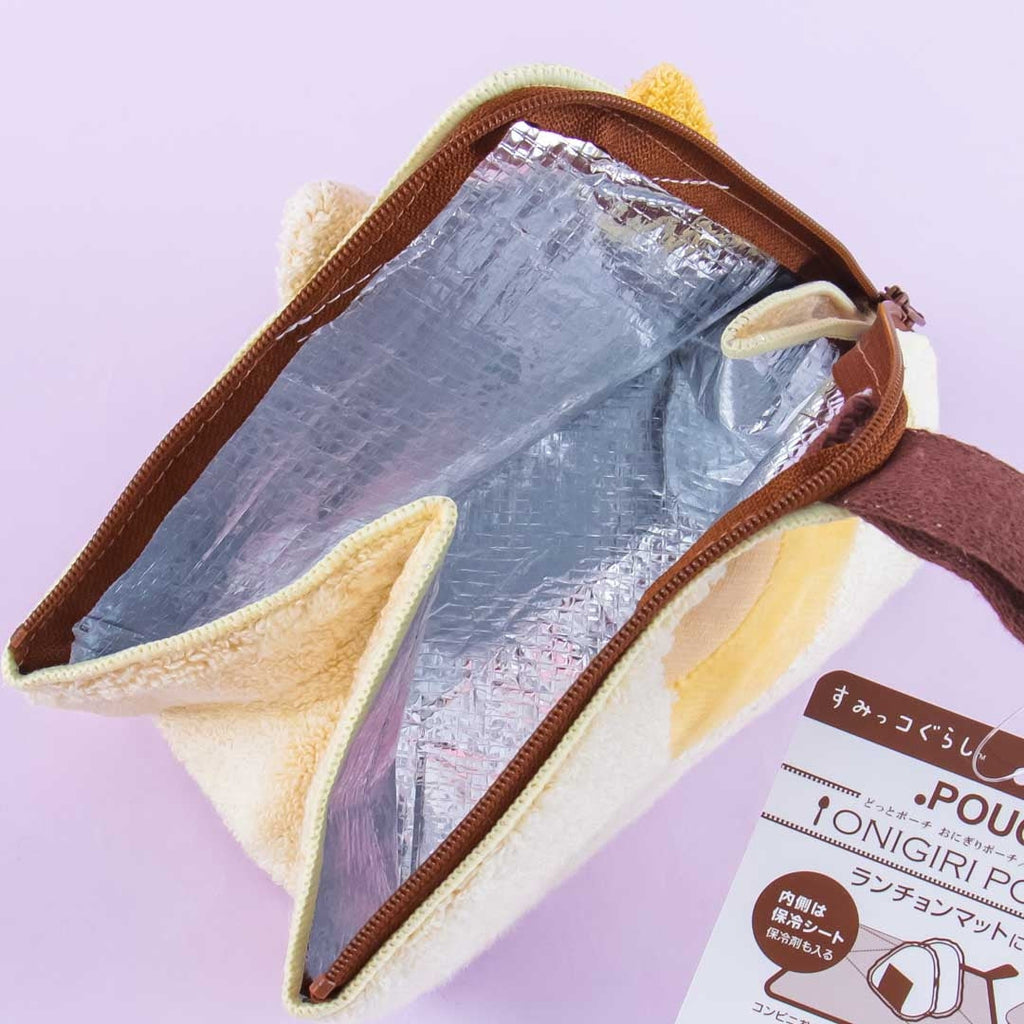 Keep triangle-shaped sandwiches fresh by placing them inside this super kawaii insulated pouch featuring Neko from the Sumikko Gurashi gang! This cute zippered pouch is shaped like a piece of onigiri or a Japanese rice ball. You can also keep other small food items inside it!