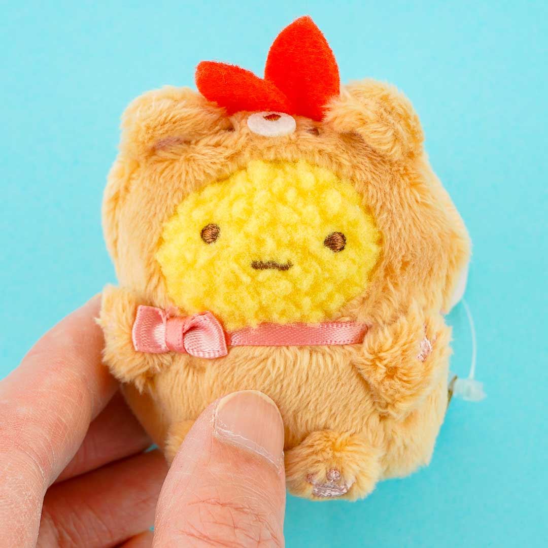 This super cute Ebifurai No Shippo plushie is wearing a fuzzy bear costume! Add this small sitting plushie to your shelves as decor.