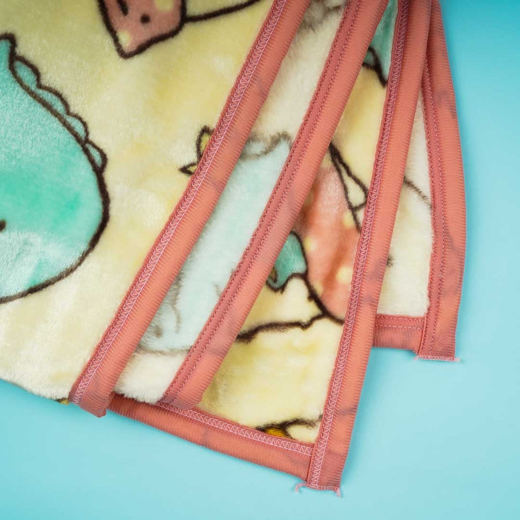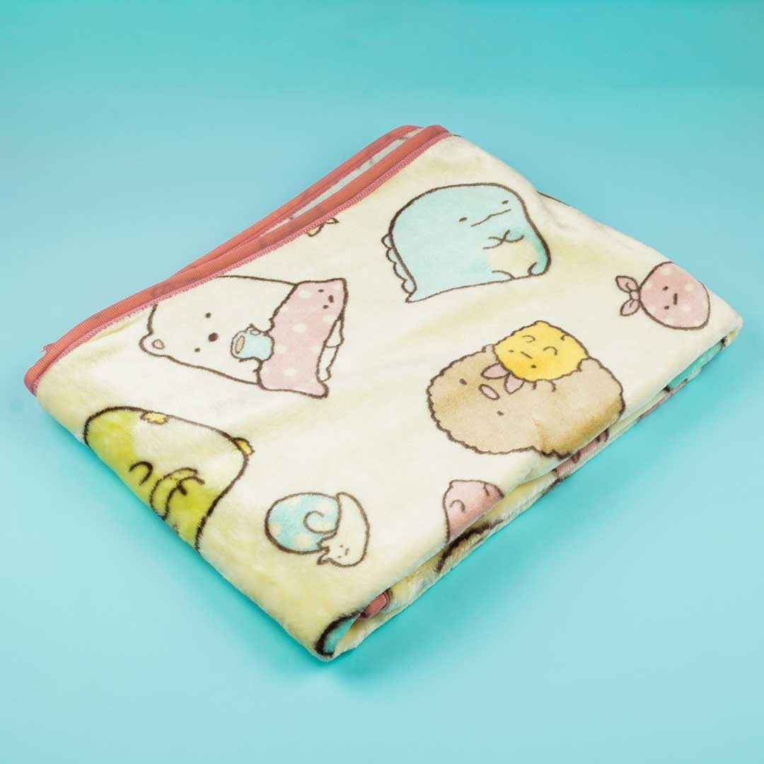 A long blanket featuring kawaii prints of the Sumikko Gurashi gang