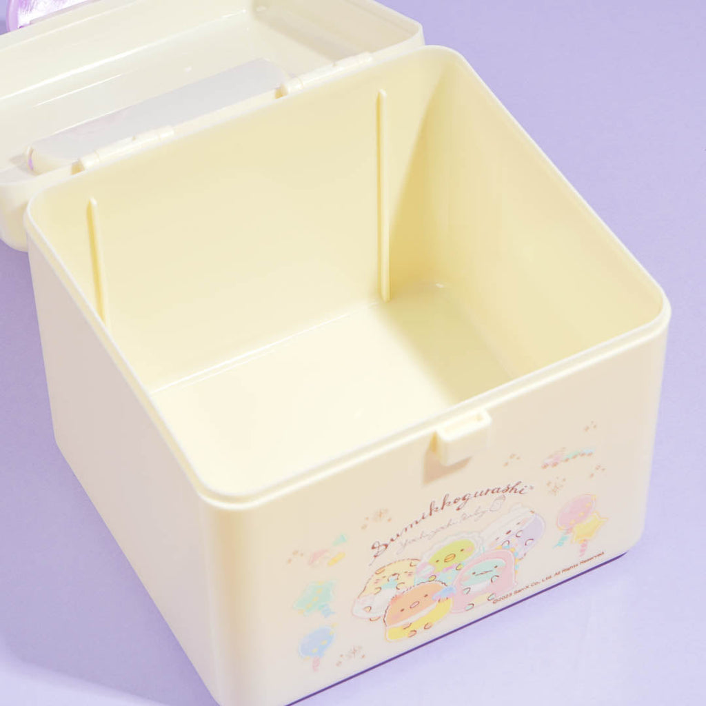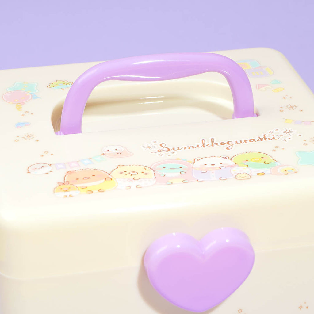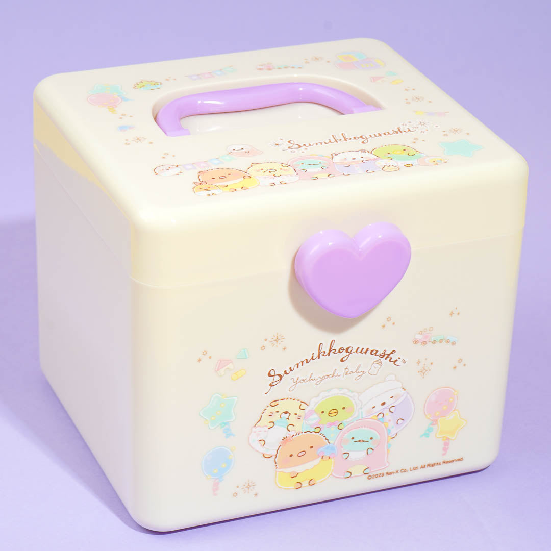 Use this kawaii storage box to organize your jewelry, trinkets, and other things. It showcases prints of the Sumikko Gurashi gang having a party! Not only does this box have a cute heart-shaped lock, but it also has a removable tray with 2 detachable partitions.