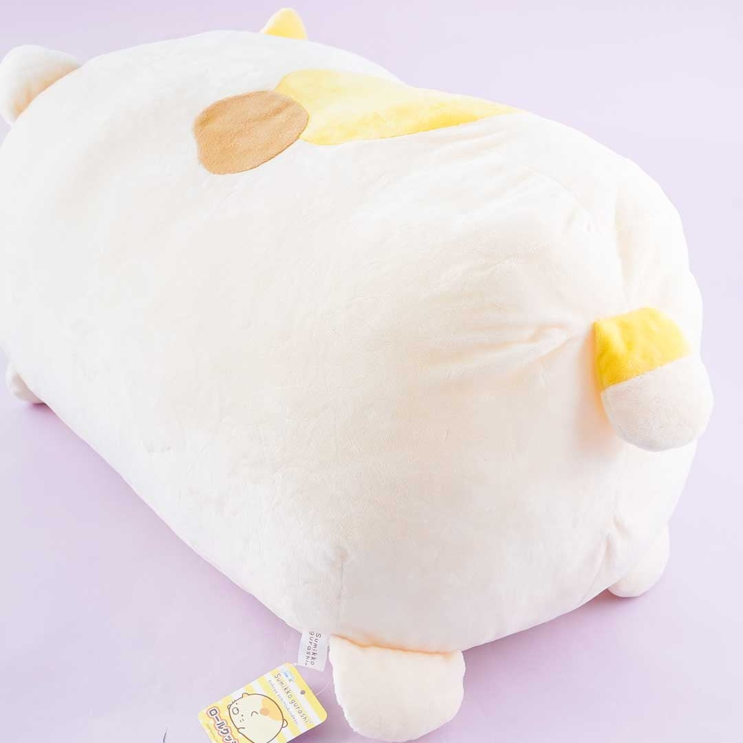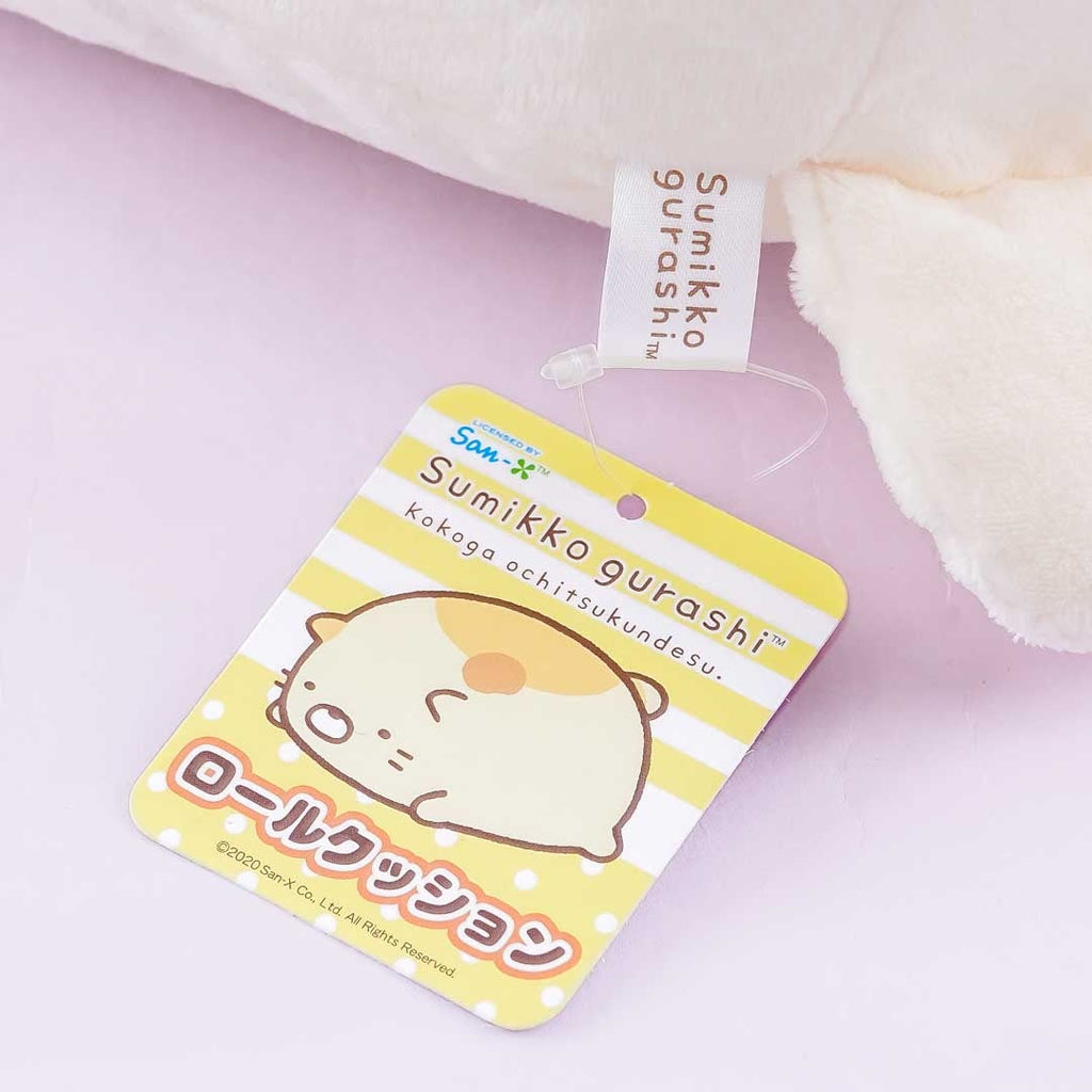 An extra large Neko plushie roll cushion from the Sumikko Gurashi