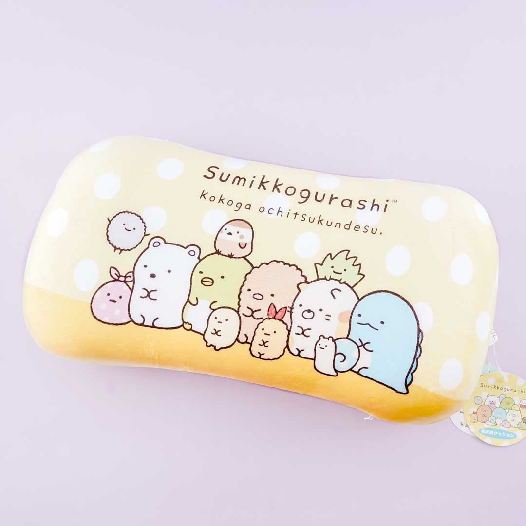 A kawaii memory foam pillow featuring the Sumikko Gurashi gang and lots of polka dots