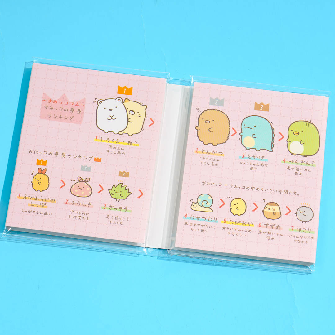 This super cute memo pad set looks like a profile book! It features the Sumikko Gurashi and the characters' profiles. This set comes in a flip-book-style cover!