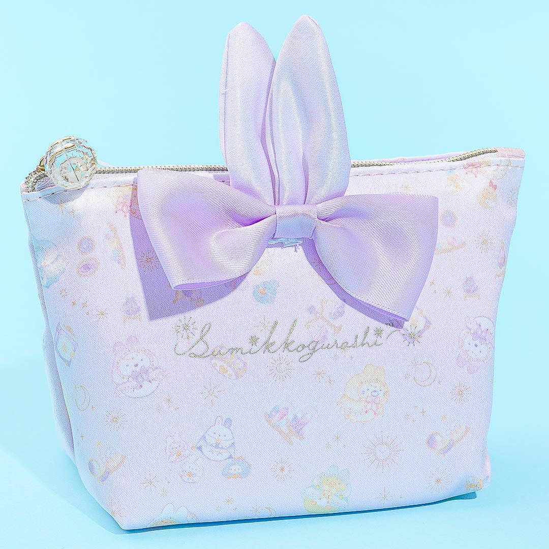 Keep your favorite makeup products inside this super cute pouch! It has a huge bunny ear-shaped purple bow and has kawaii prints of the Sumikko Gurashi gang dressed in rabbit cloaks and doing magical spells together! The makeup bag comes from the “Rabbit’s Mysterious Spell” collection.