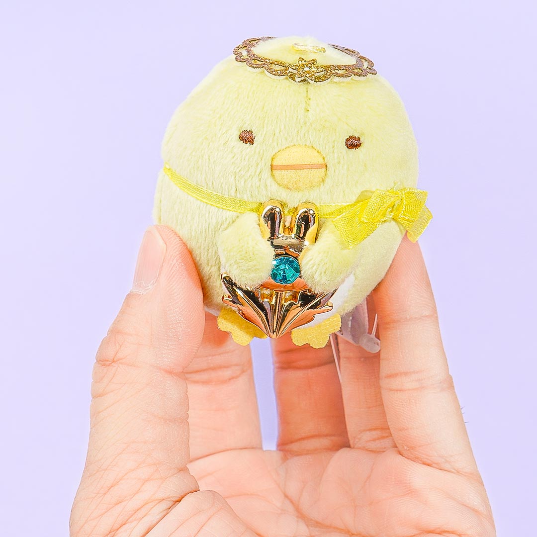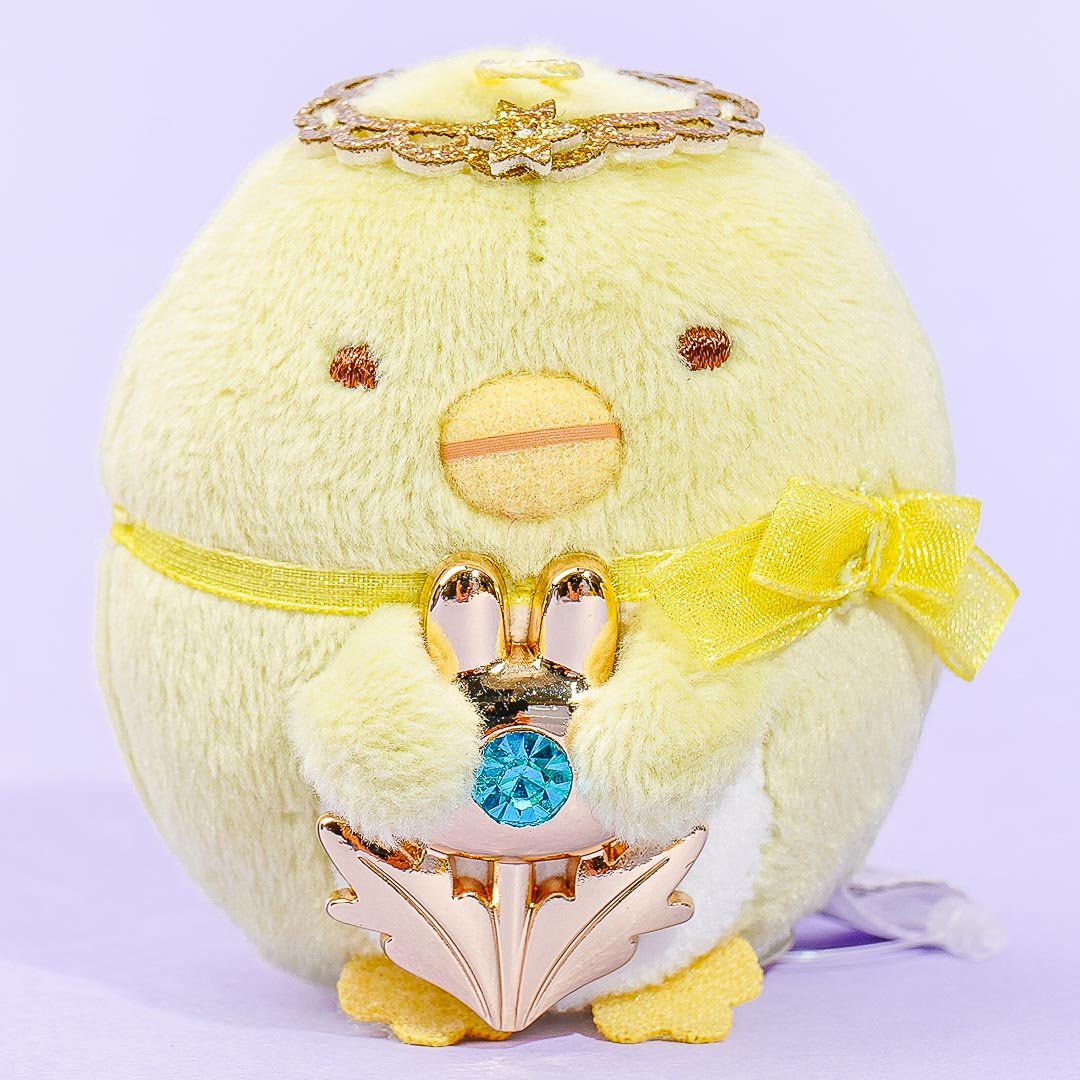 This mini Penguin? plushie can make your room extra cute! Its body is "tenori" or small and chubby and it's wearing a golden crown. This plushie is also holding a metal rabbit charm with a sparkly rhinestone.