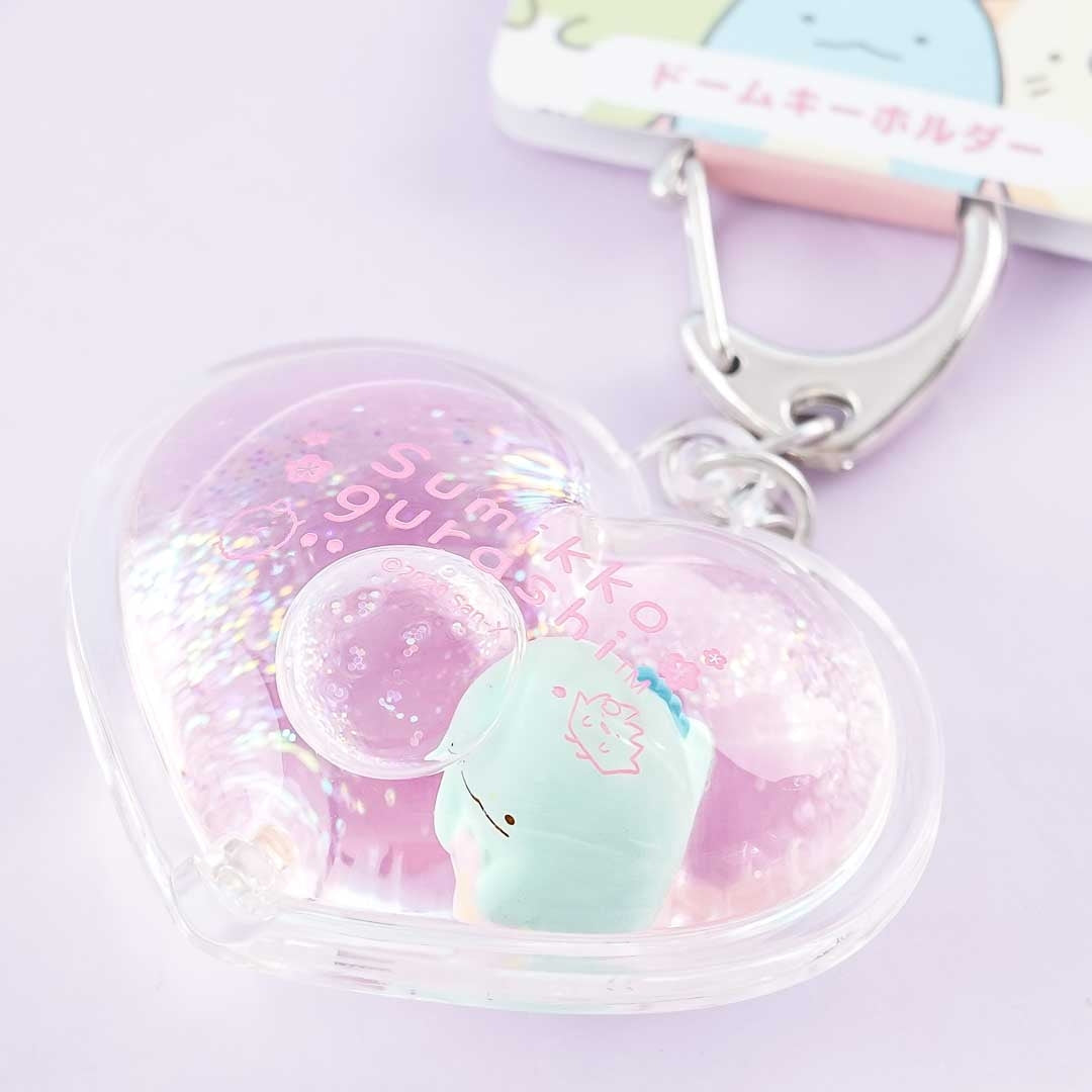 • A kawaii heart-shaped Sumikko Gurashi charm with a movable Tokage figure and glitter inside