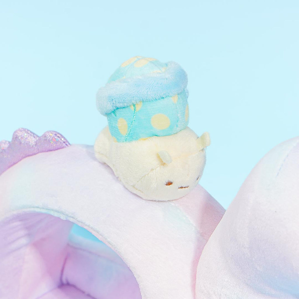 Sumi-sseii is the mother of Tokage from the Sumikko Gurashi. This Sumi-ssei plushie is part of the Sumikko Gurashi Scene series which tells the story of Tokage, his mother, and his friends visiting Lake Mitsu. Add this medium-sized plushie to your collection! You can put smaller Sumikko Gurashi tenori plushies in the middle of Sumi-sseii.