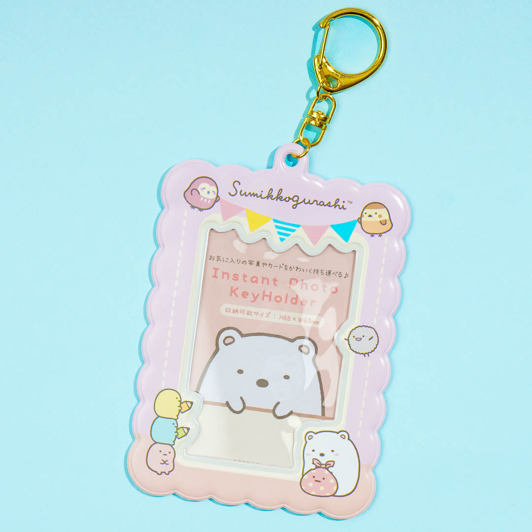 This super cute keychain features Shirokuma from Sumikko Gurashi! You can place your photo inside the clear pocket to add a personalized touch to your keys. You can also use this as a charm for your bag!