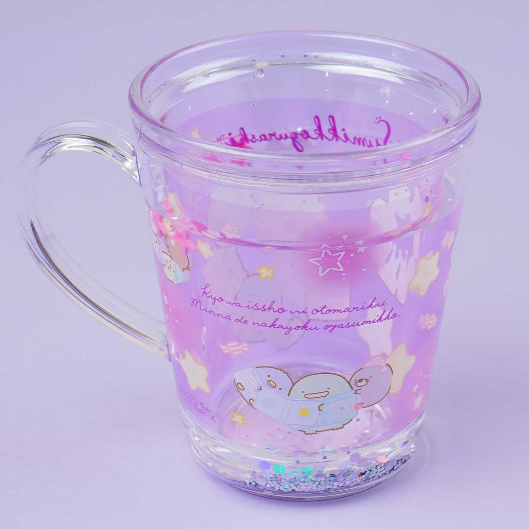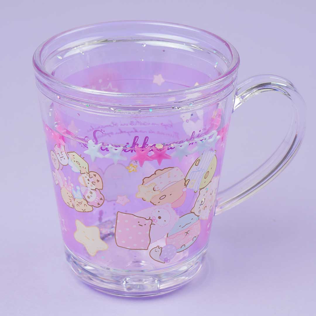 This kawaii cup has a layer of water with floating stars and sparkles! It features cute prints of the  Sumikko Gurashi cuties in their pajamas. Use it to have a warm glass of milk before you go to bed.