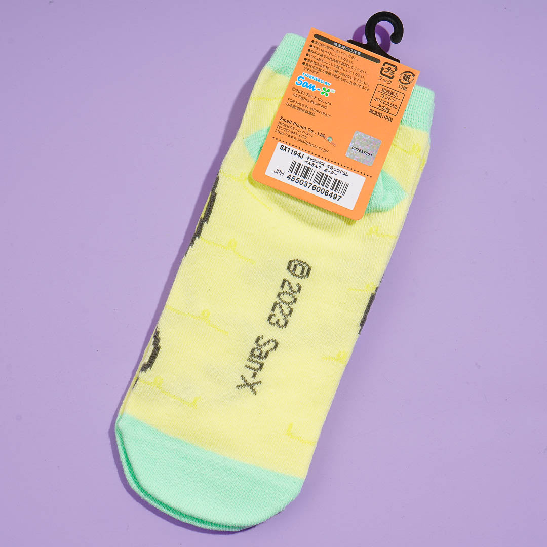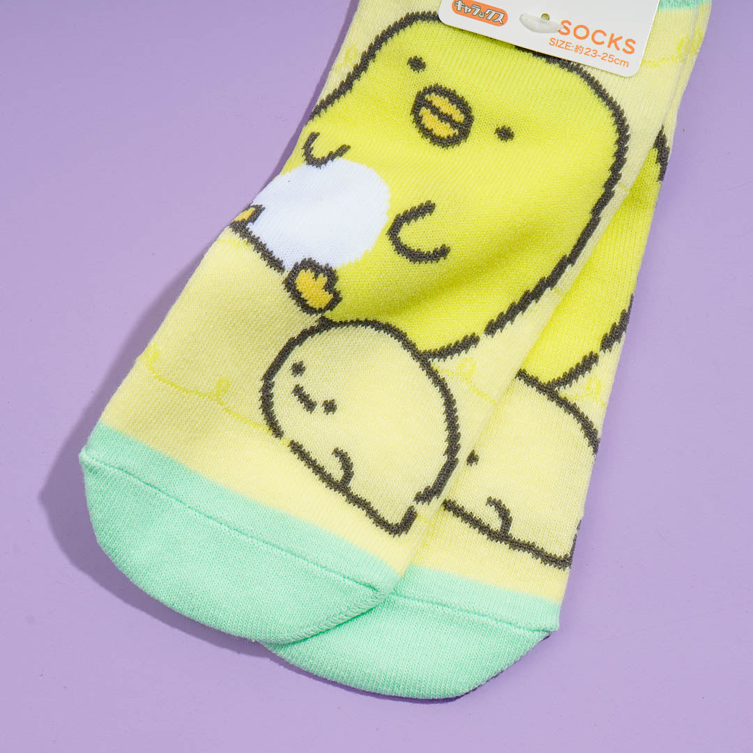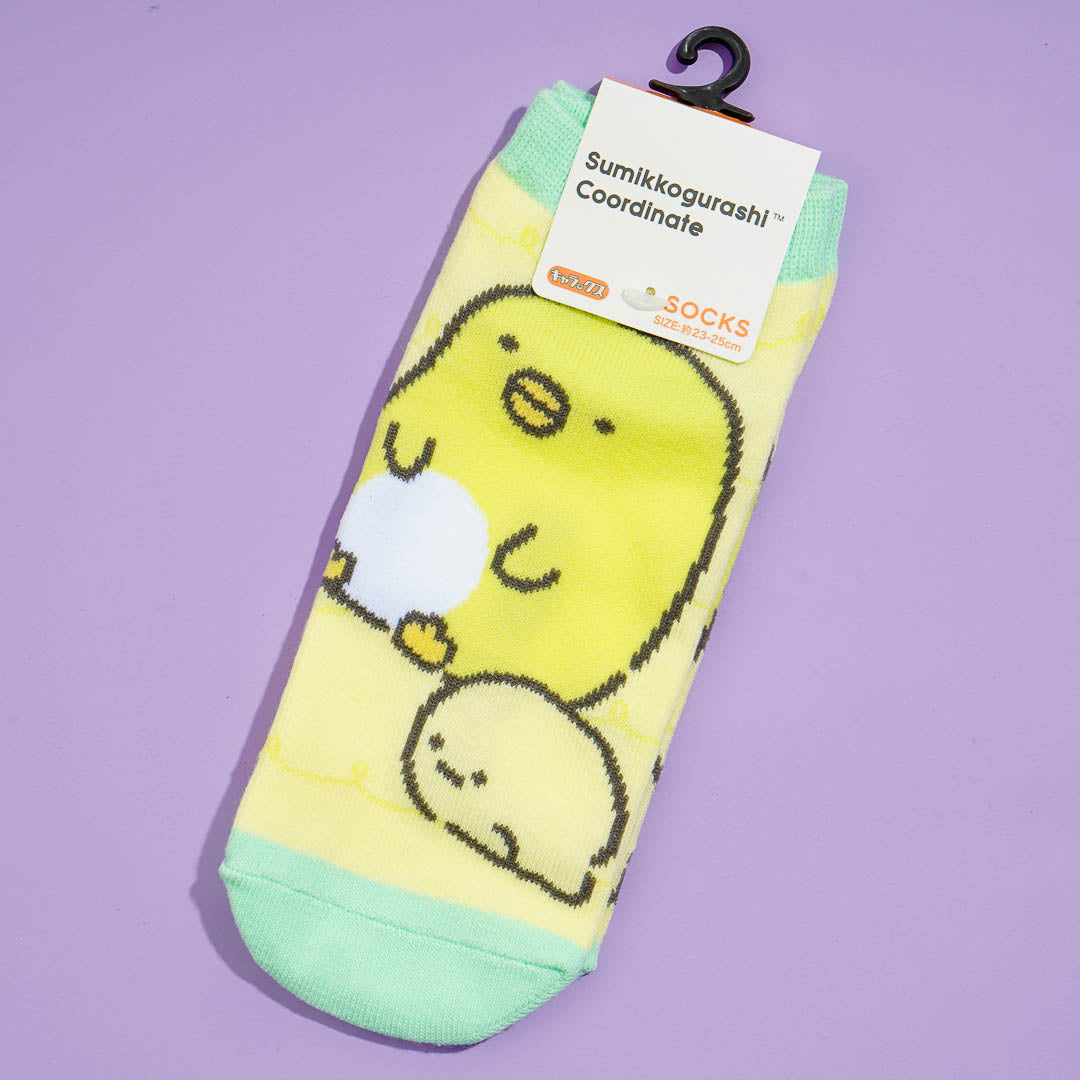 This cute pair of sneaker socks features the cute Sumikko Gurashi characters, Penguin? and Tapioca. Wear it to complete your kawaii outfit!