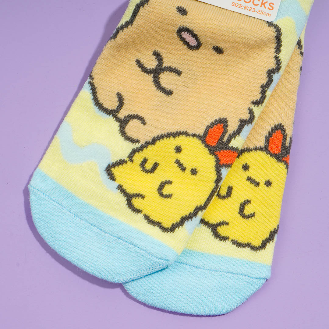 Kawaii-fy your outfit with this pair of ankle-length socks! It features Tonkatsu & Ebi, the cute best friends from Sumikko Gurashi.