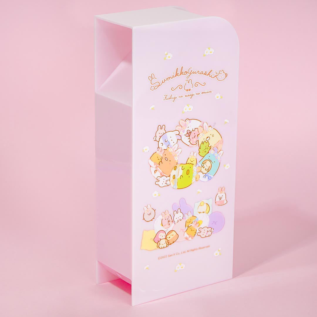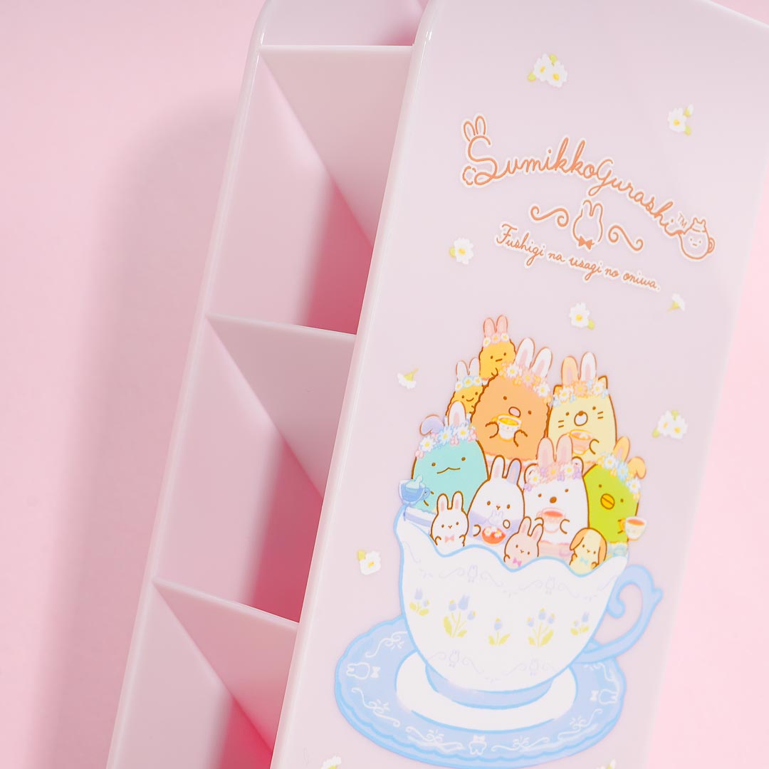 Have fun organizing your pens, scissors, and other office supplies in this kawaii pink tower stand! It’s decorated with illustrations of the Sumikko Gurashi gang all dressed up as springtime rabbits.