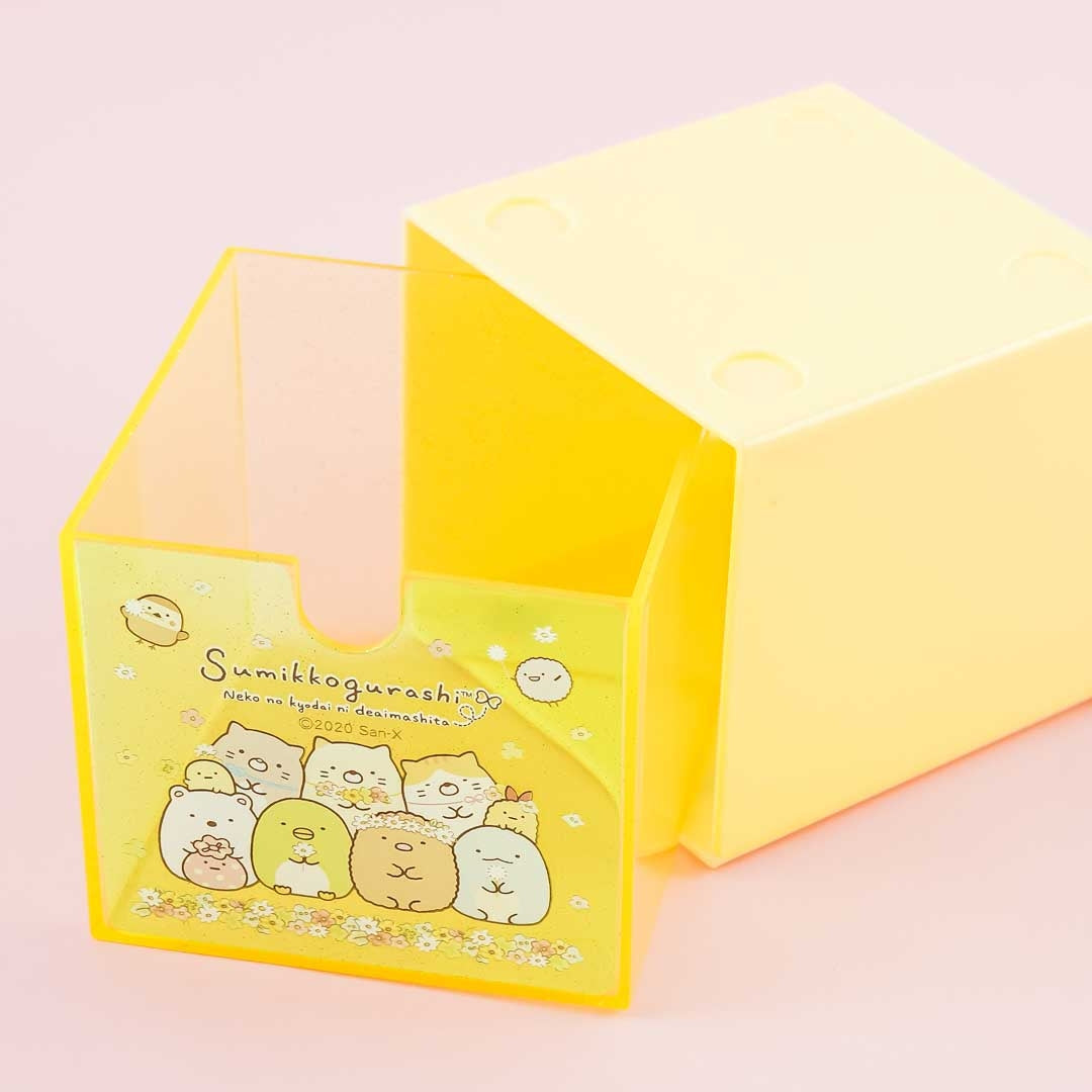 Keep your trinkets organized inside this square case with illustrations of the Sumikko Gurashi gang wearing spring flowers on the glittery transparent drawer! This cute chest is made of durable material and can be stacked with drawers of the same size.