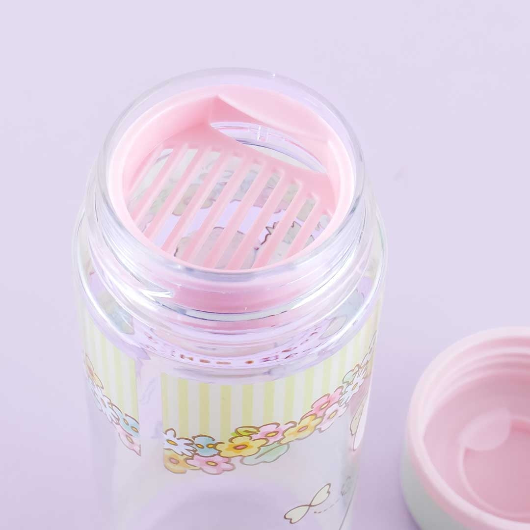 Quench your thirst using this kawaii clear bottle featuring the Sumikko Gurashi gang wearing floral crowns and playing with spring flowers! It can hold both hot and cold drinks with its body made of transparent durable material and comes with a twist cap and a tea filter. However, this bottle is not dishwasher safe.