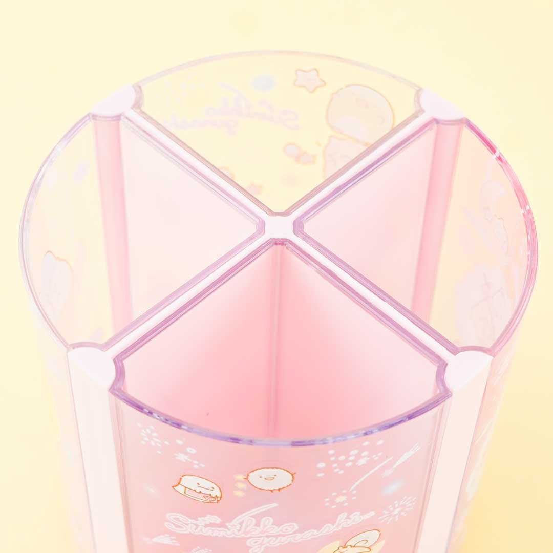 • A super cute rotating pen stand illustrated with the Sumikko Gurashi underneath the stars