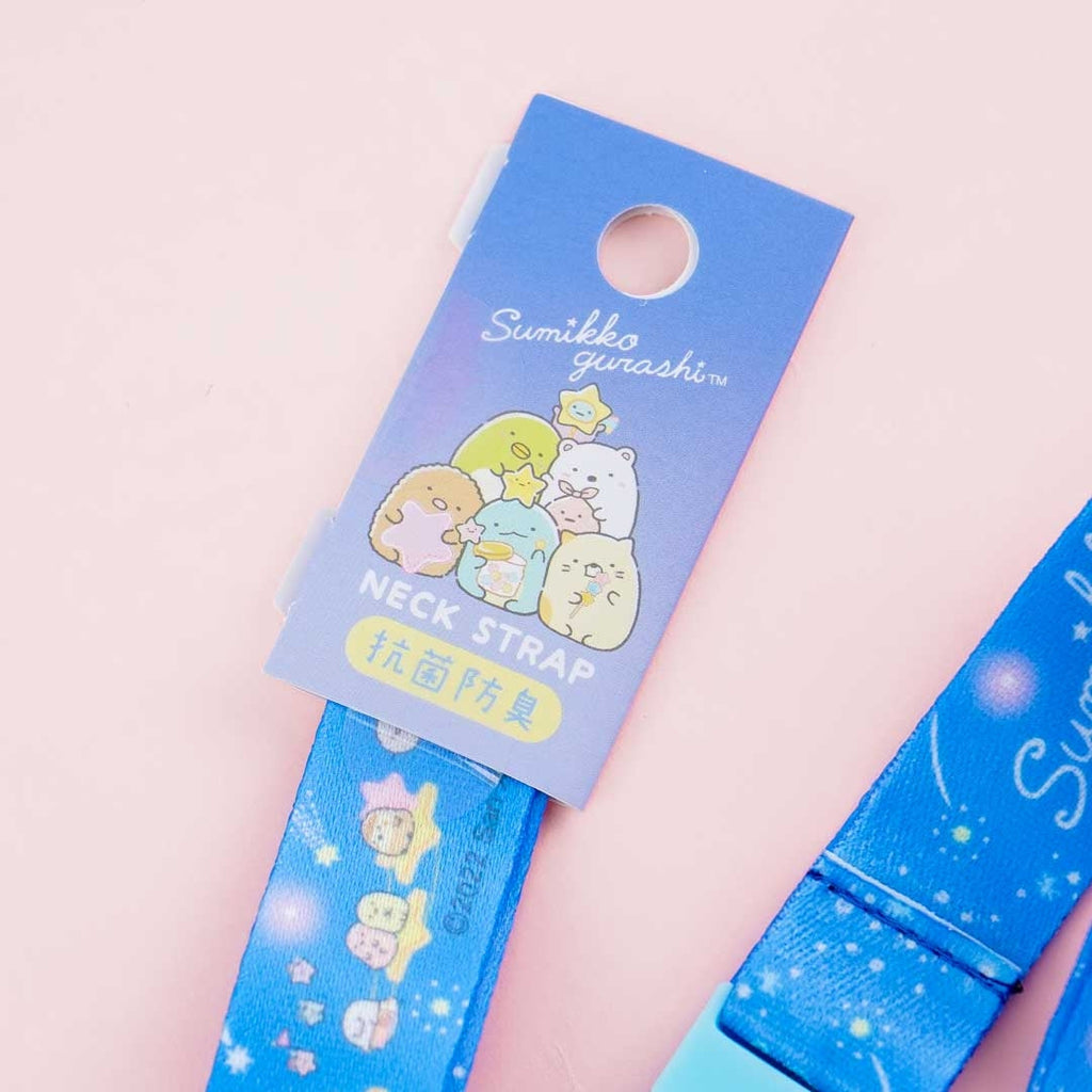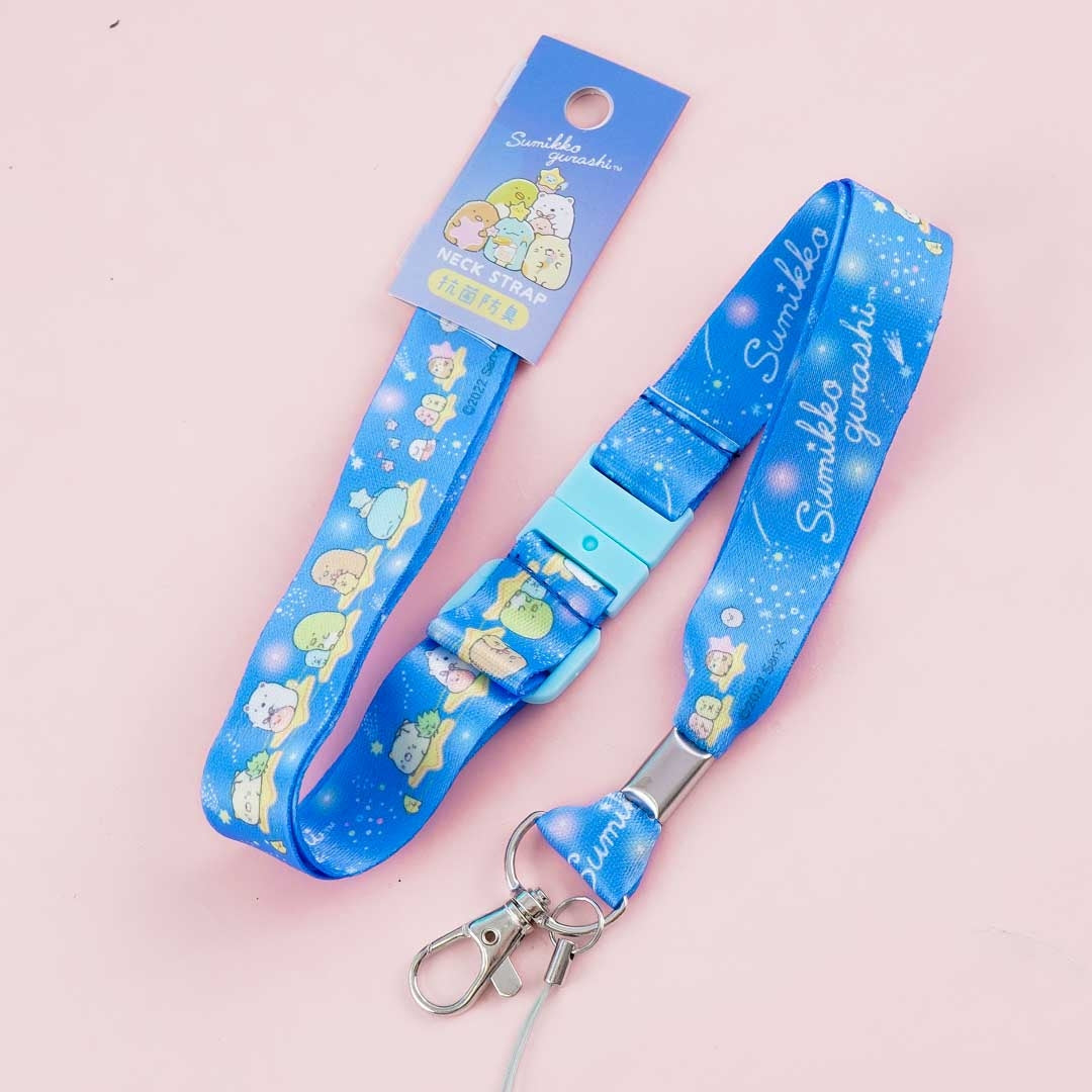 A super cute lanyard decorated showcasing the Sumikko Gurashi enjoying a ride on the stars