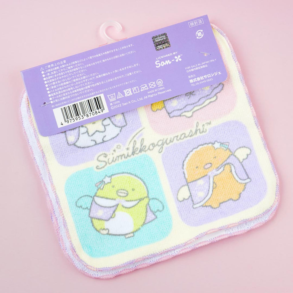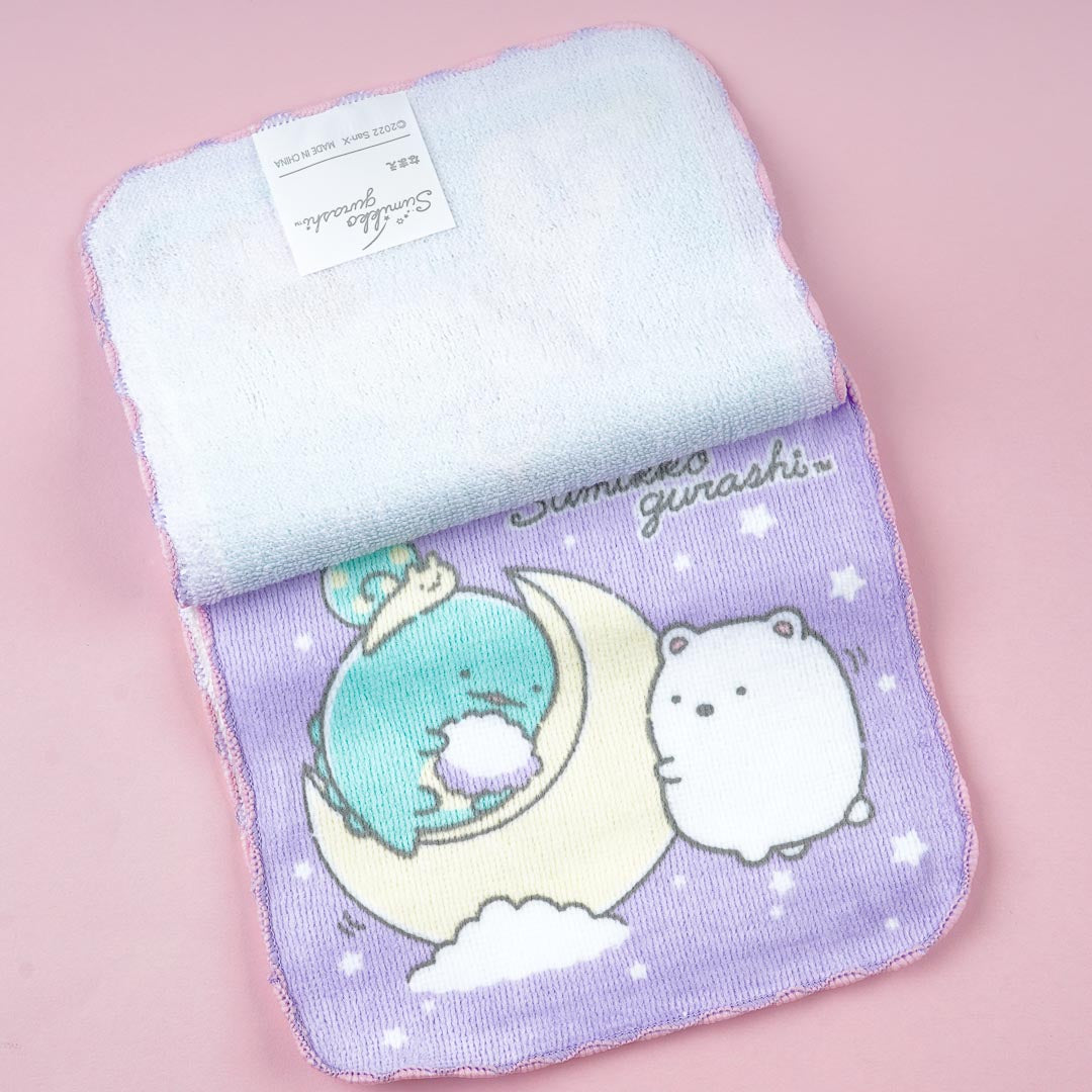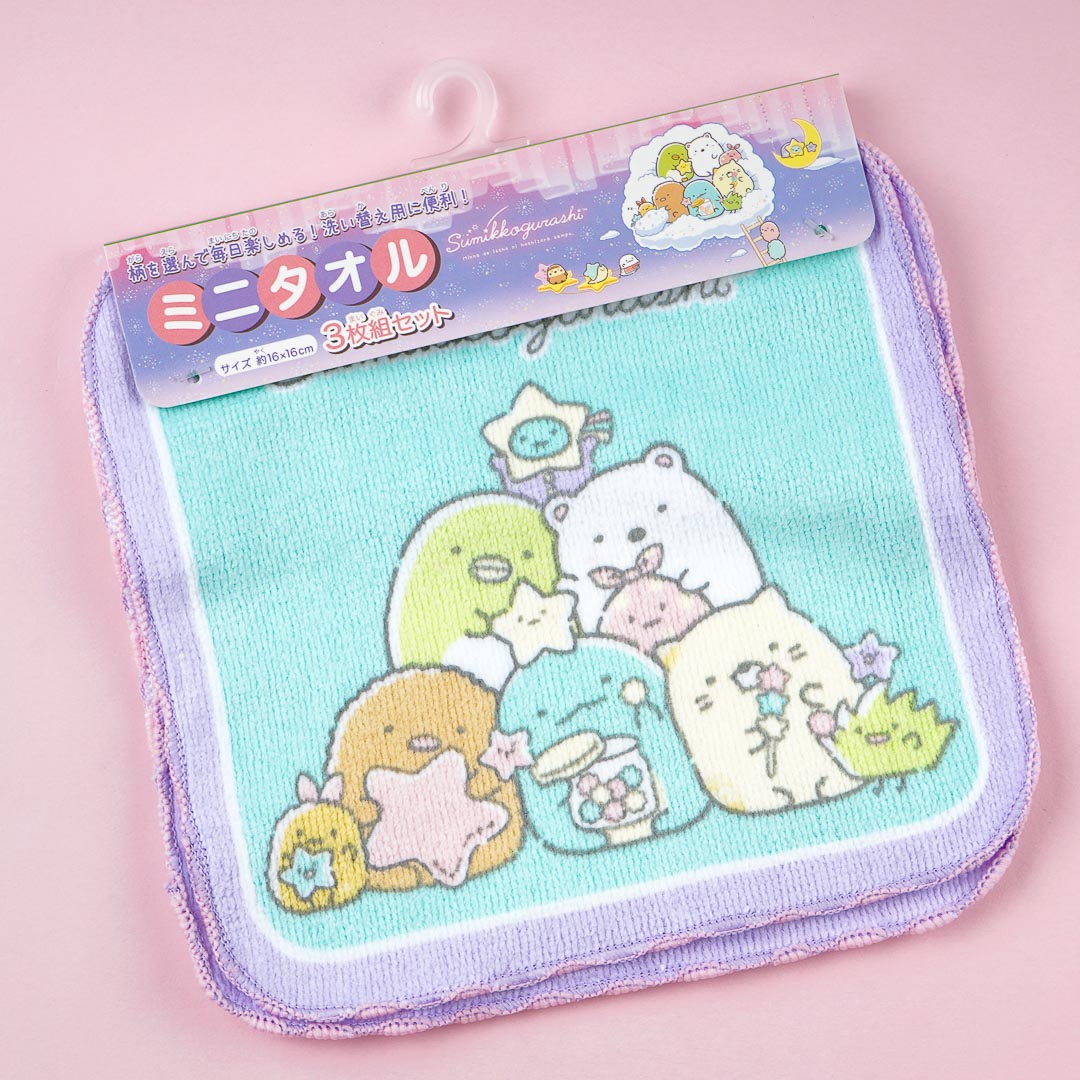 Keep yourself nice and dry while walking around town! This kawaii mini towel set features kawaii illustrations of Sumikko Gurashi characters in a starry sky.