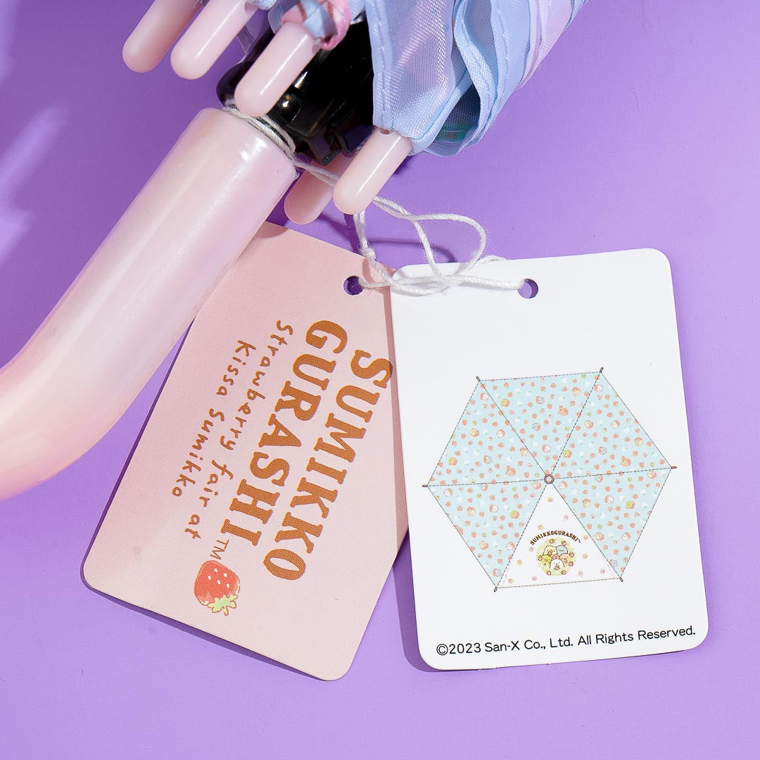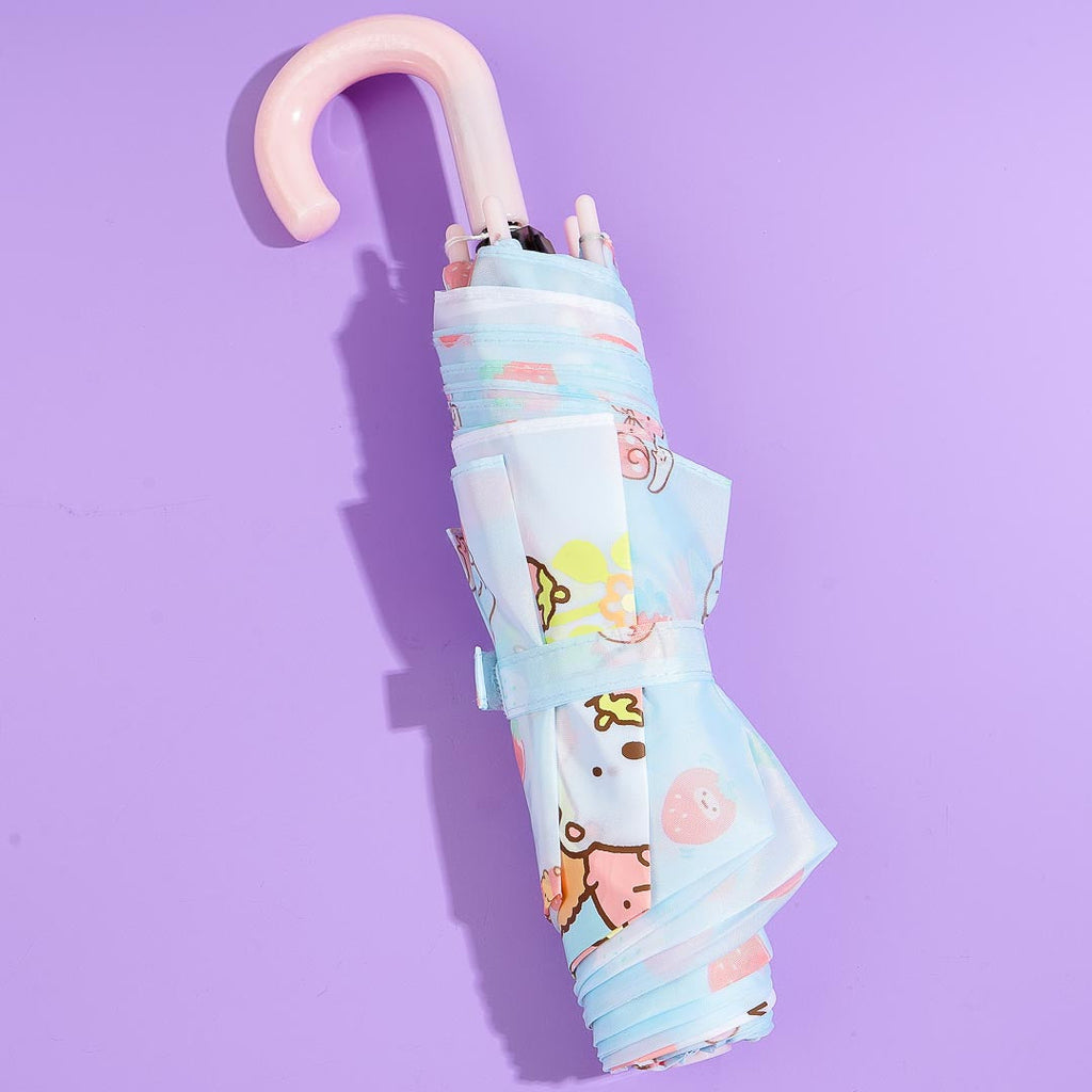 Stay cute and kawaii in whatever weather you're in by bringing along this kawaii umbrella. This cute folding umbrella showcases prints of the Sumikko Gurashi gang and strawberries! It has a safety potter's wheel design and a windproof black bone structure.