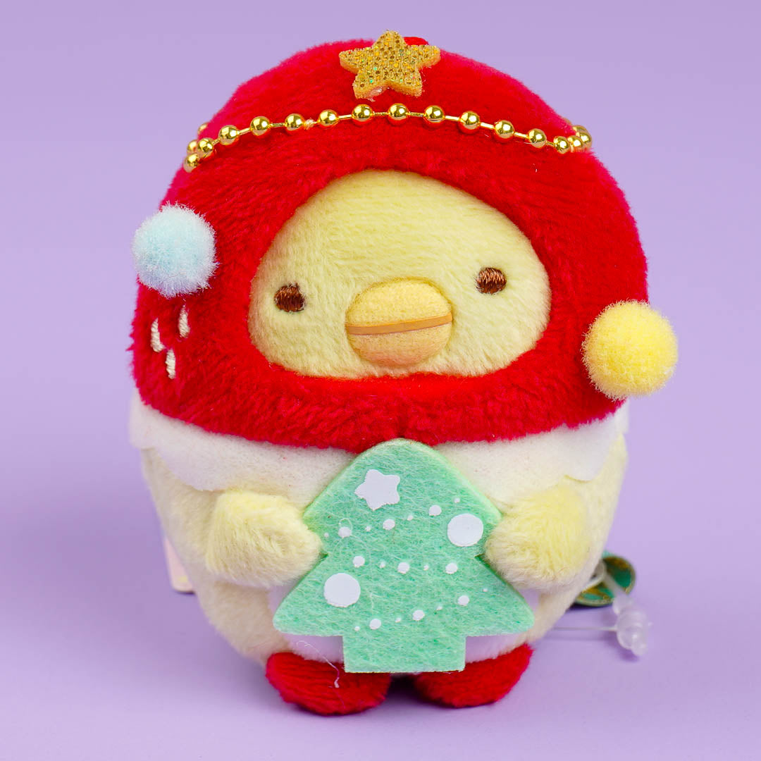 This super cute Penguin? plushie is wearing a strawberry red holiday ornament headdress and holds a tiny Christmas tree. Add this cutie from the “Sumikko Gurashi Strawberry Christmas Plushie” series to your next holiday’s home decor!