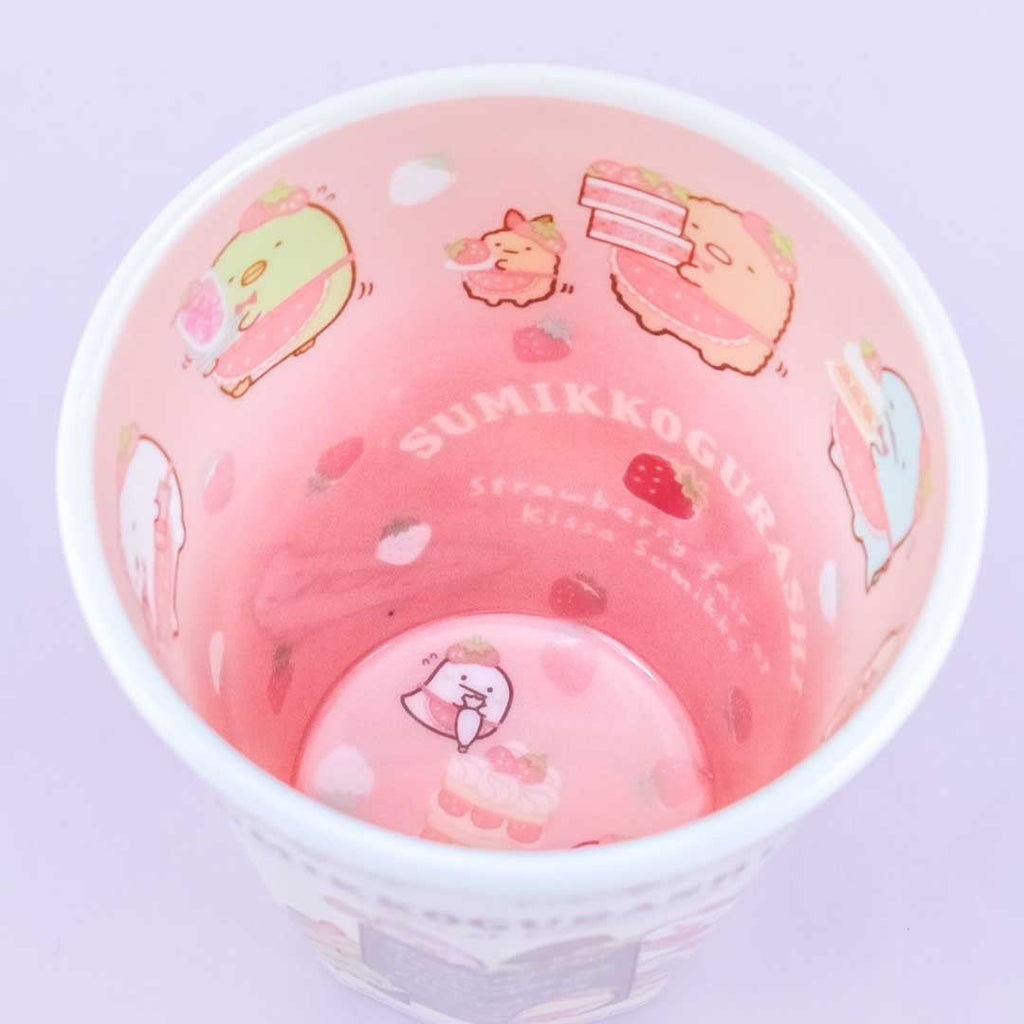 A kawaii cup featuring Sumikko Gurashi characters at the strawberry fair