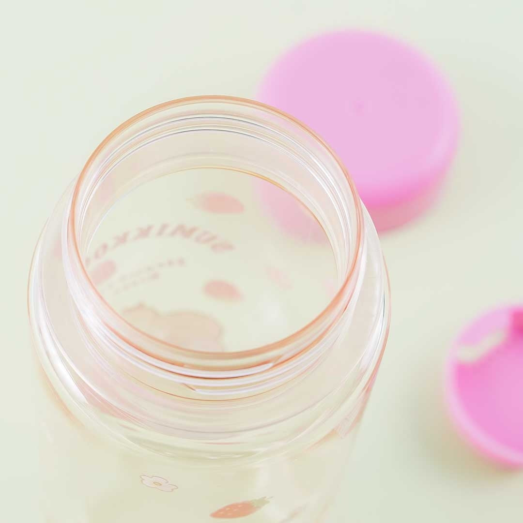 Instantly quench your thirst by using this super cute transparent bottle made of sturdy plastic! It’s decorated with kawaii prints of the Sumikko Gurashi characters hugging a giant strawberry at the Strawberry Fair! This drinking bottle also comes with a twist lid and a tea filter so you can place infused drinks as well.