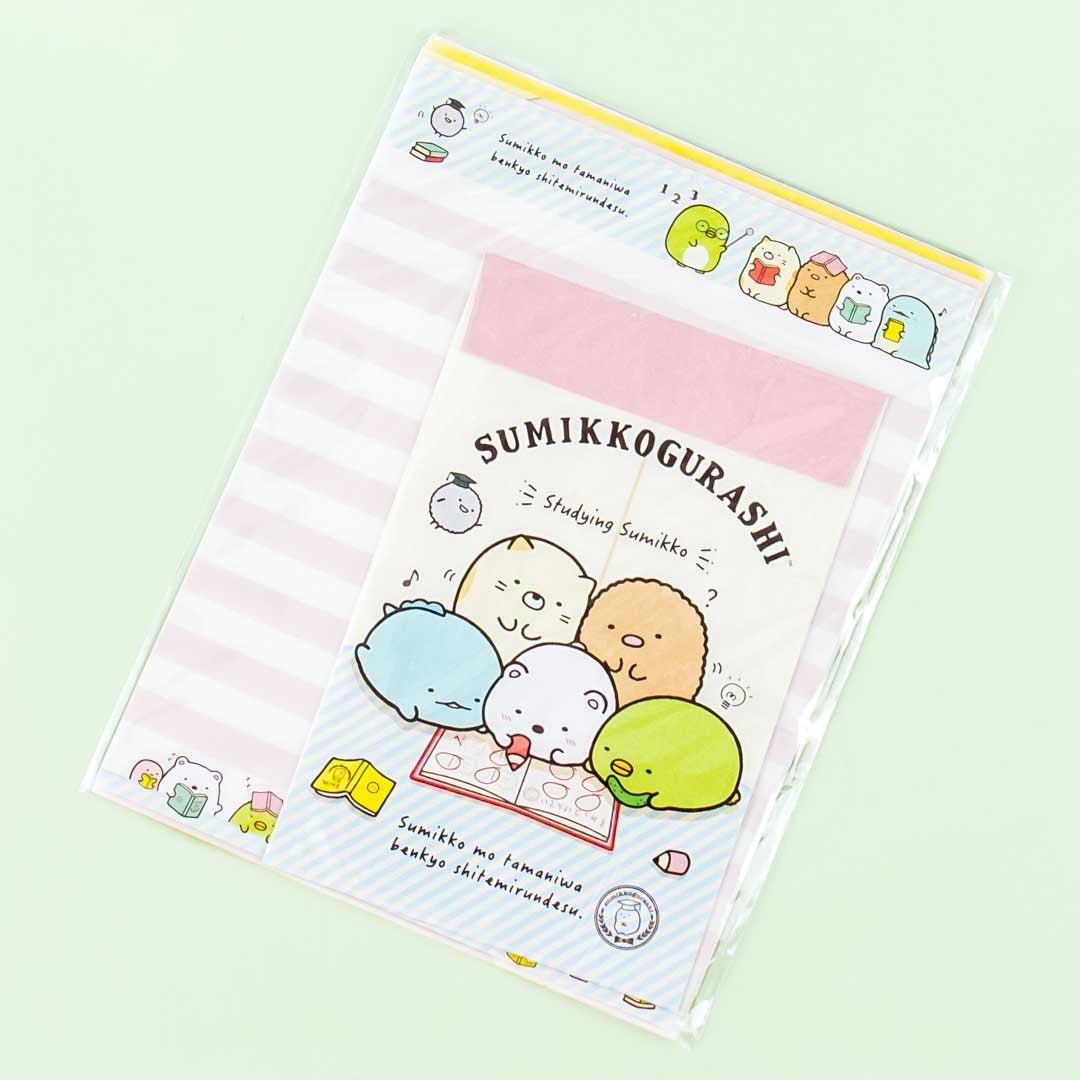 • A kawaii letter set featuring Sumikko Gurashi characters studying