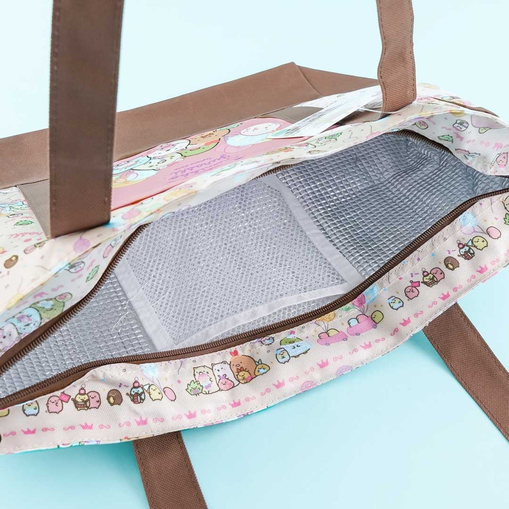 Bring this super cute insulated tote on your picnic to keep your drinks and snacks fresh! It has prints of the Sumikko Gurashi gang having fun at the Tapioca Park! This zippered bag is spacious, lined with aluminum, and has three extra outer pockets. The inner mesh pocket is meant to store an ice pack.