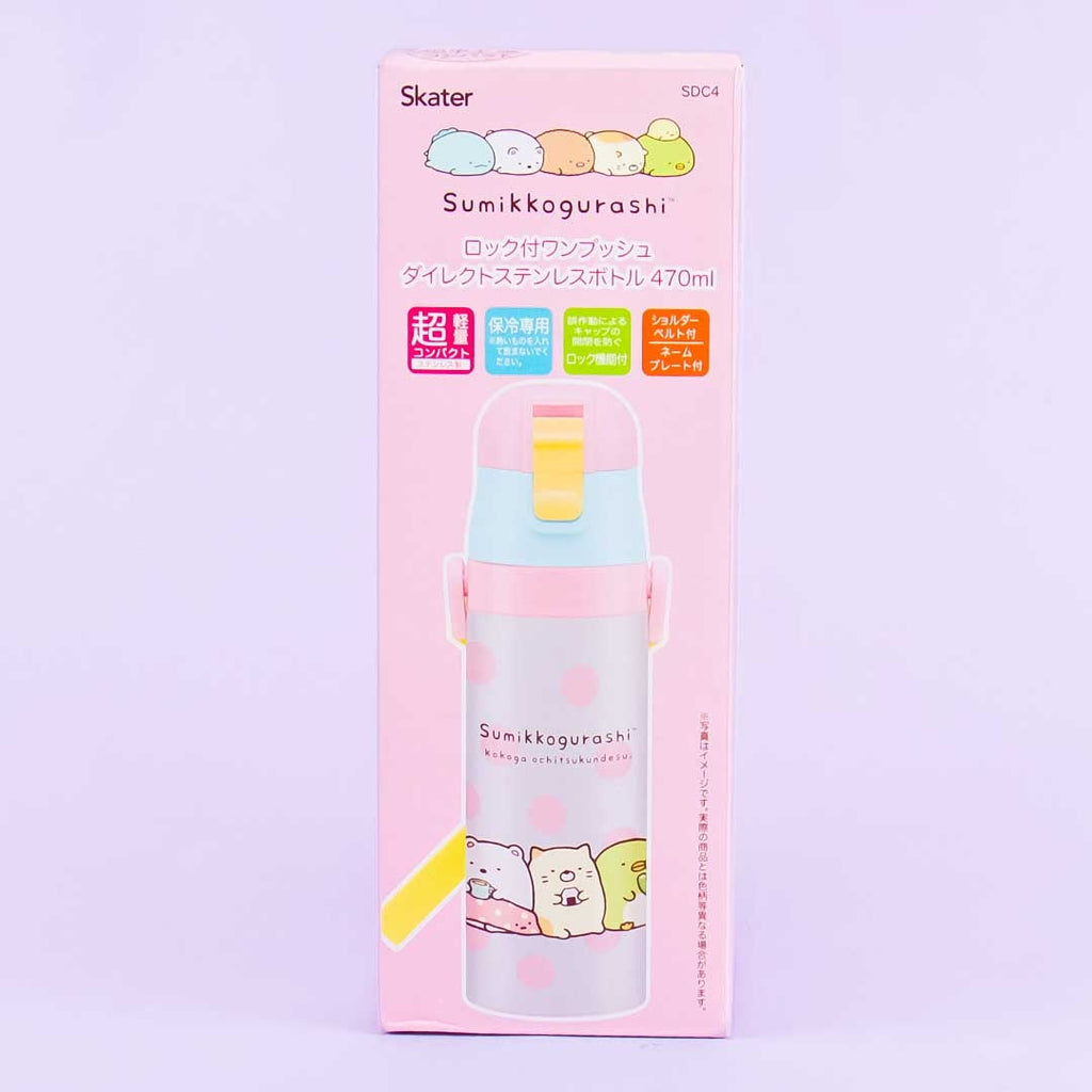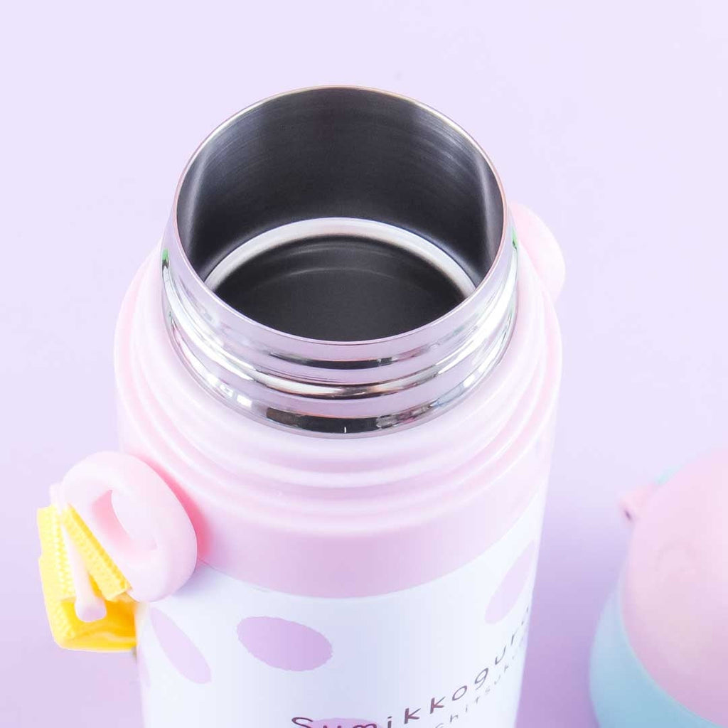 A super kawaii wide-mouth stainless steel bottle illustrated with the Sumikko Gurashi eating and drinking tea