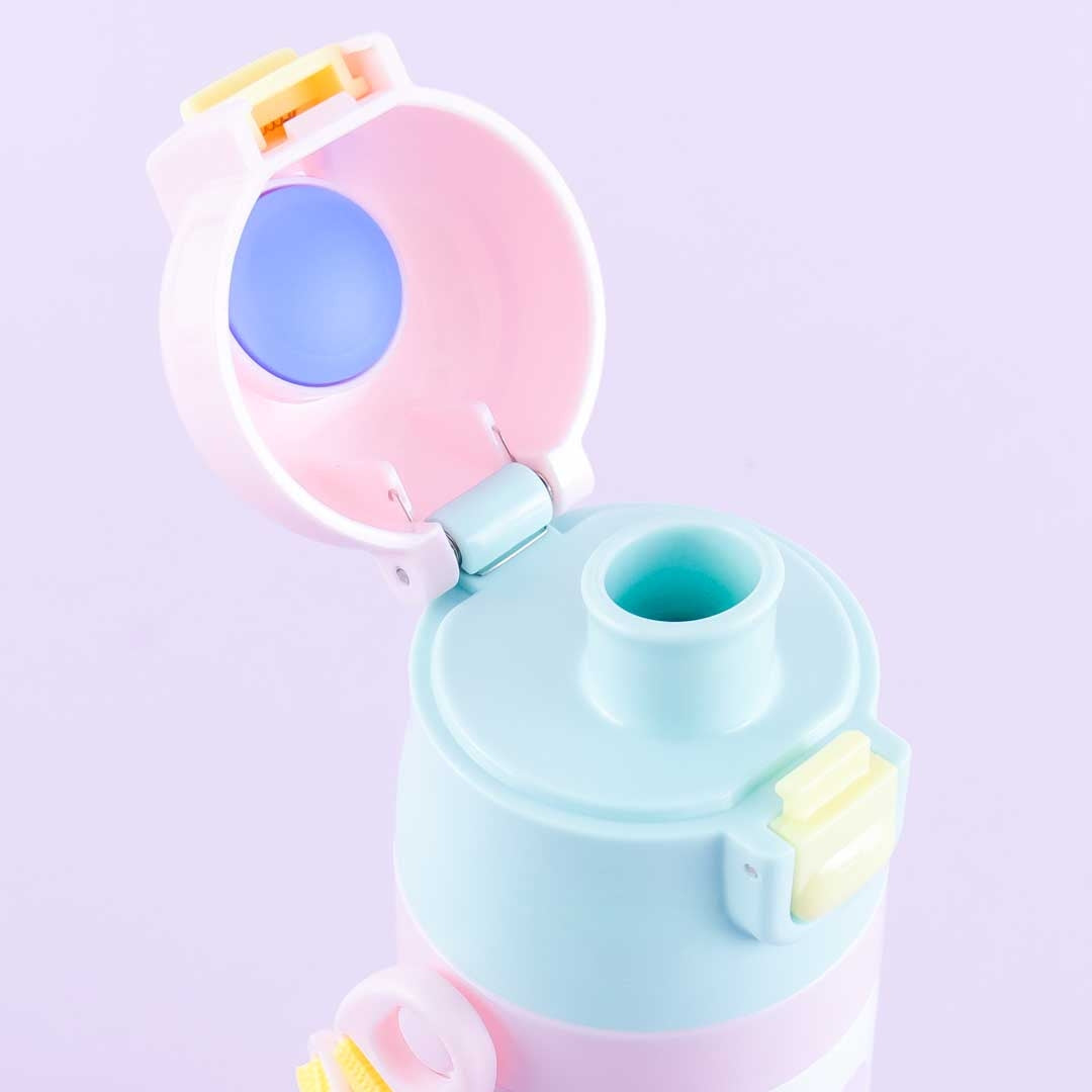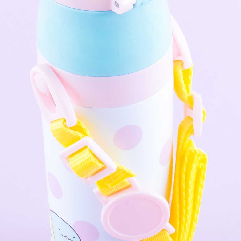 Use this cute stainless steel bottle featuring prints of the Sumikko Gurashi eating and drinking tea to keep yourself hydrated! It has a one-push open lid with a safety lock that keeps your drink secure. This wide-mouth water bottle has a two-layer vacuum structure that keeps drinks cool for longer. Take it with you on trips using its detachable and adjustable shoulder strap with a nameplate.