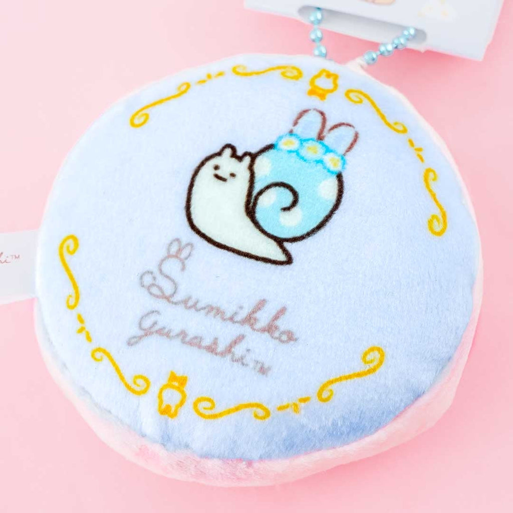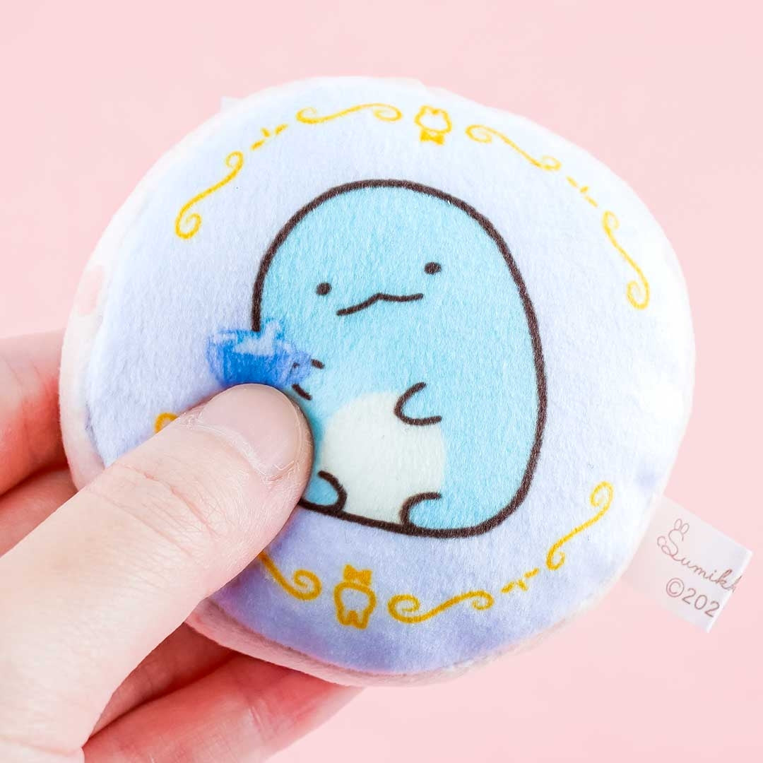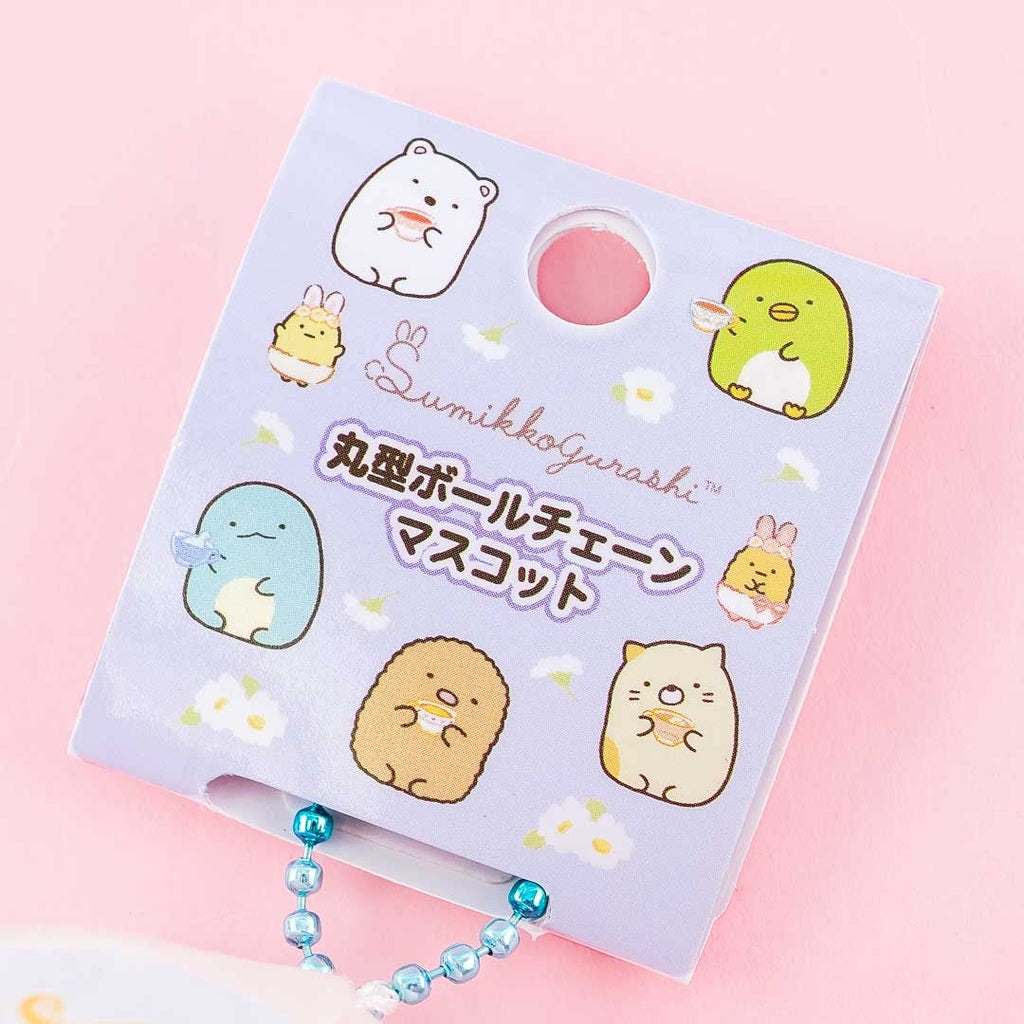 This super kawaii round plushie charm is illustrated with Tokage from the Sumikko Gurashi drinking tea! Attach it to your favorite bag with its removable ball chain.