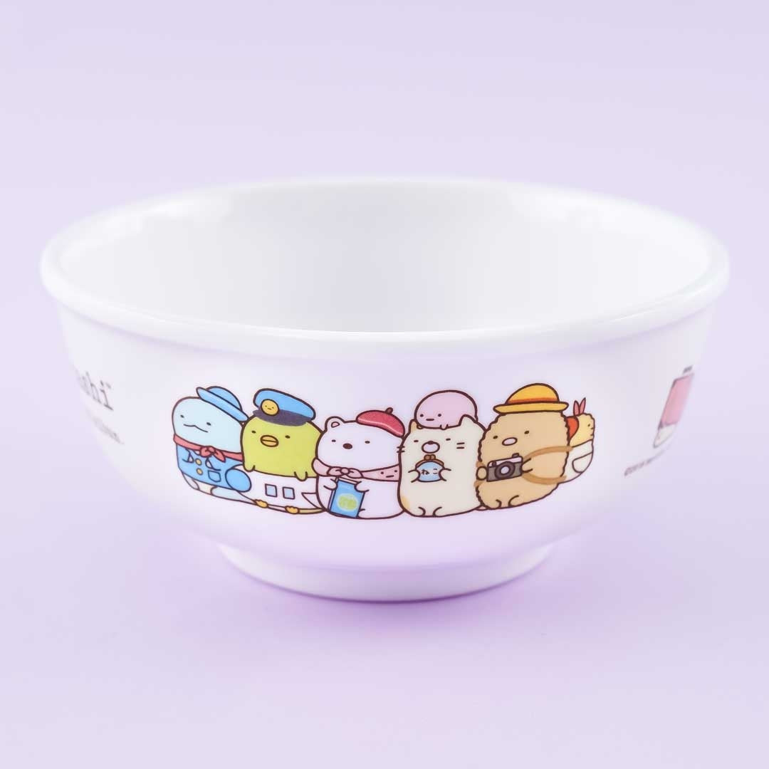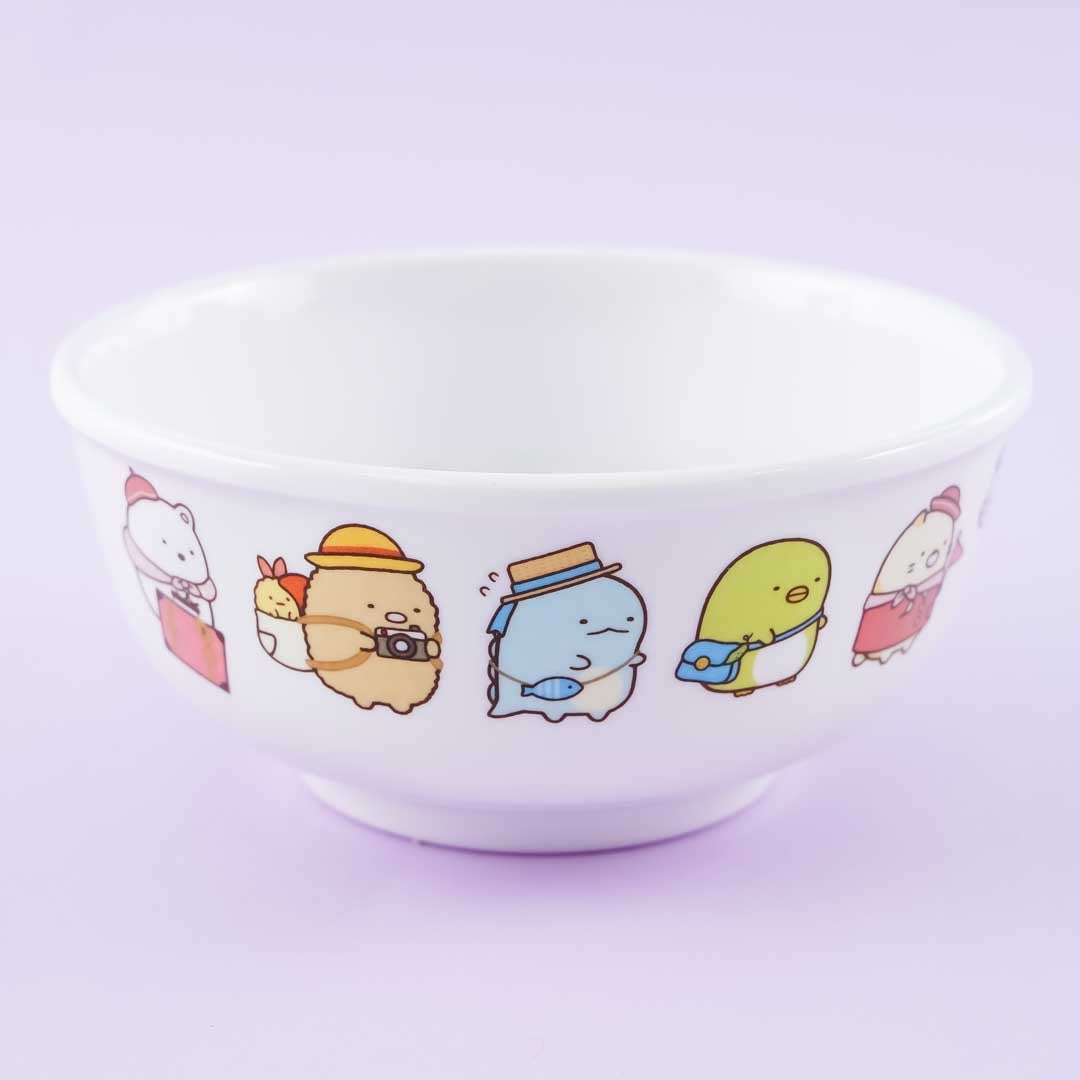 • A kawaii bowl illustrated with the Sumikko Gurashi geared up for an adventure