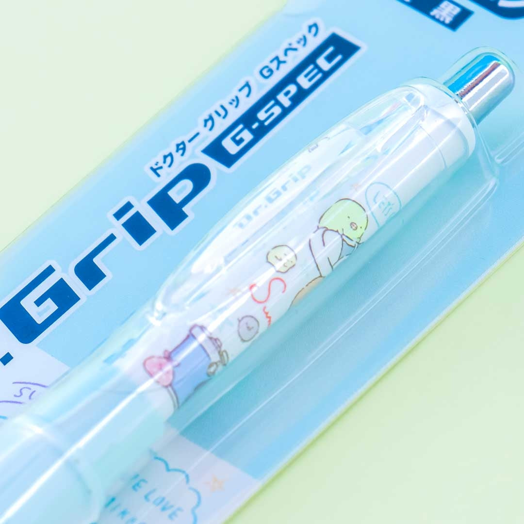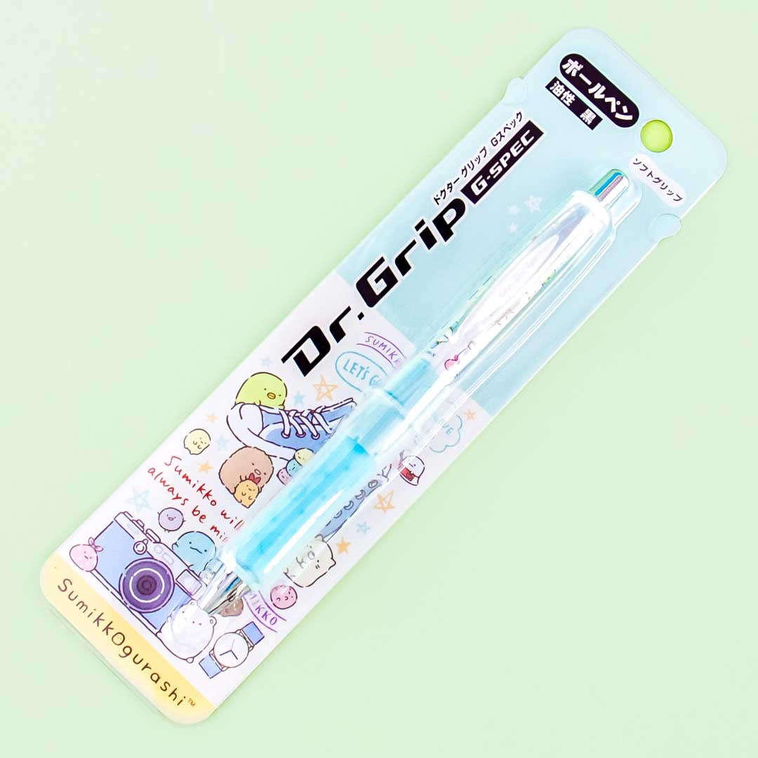 A super cute ballpoint pen illustrated with the Sumikko Gurashi gang surrounding shoes and a camera