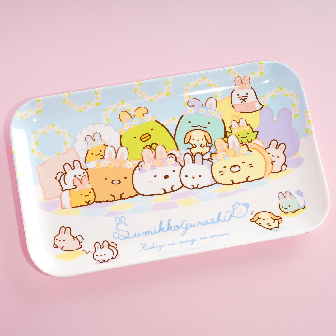 This super cute melamine tray showcases the Sumikko Gurashi dressed as kawaii bunnies! It's perfect for serving dishes at parties or taking snacks up to your room. Remember not to place this tray too close to fire as it may burn.