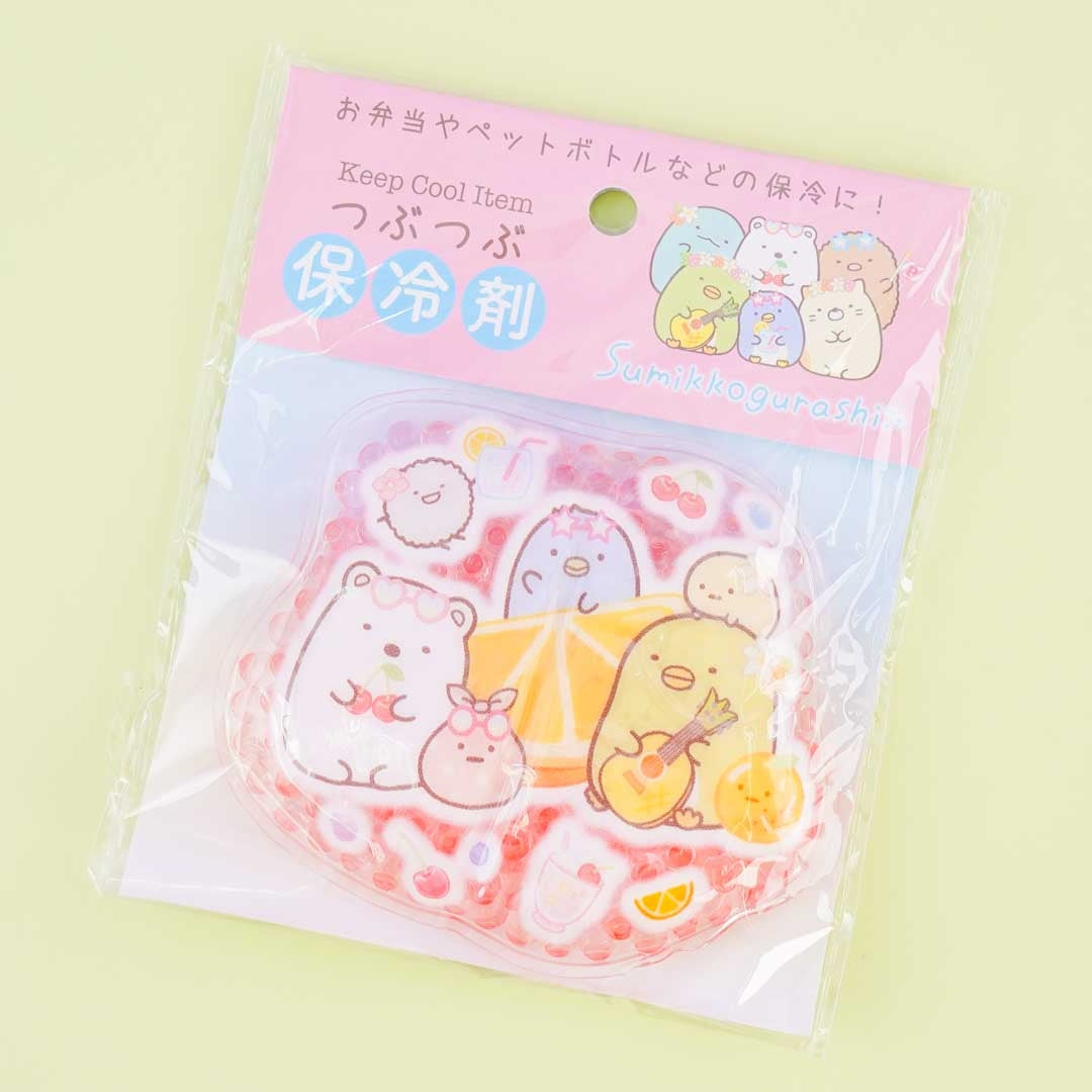 Use this kawaii die-cut cold pad to keep your lunch boxes and bottles fresh. It's illustrated with the Sumikko Gurashi having a fruit party! Remember to flatten and place this cold pad in the freezer for at least 3 hours before using it.