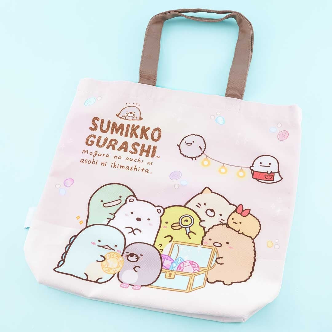 • A kawaii tote with prints of the Sumikko Gurashi gang living underground