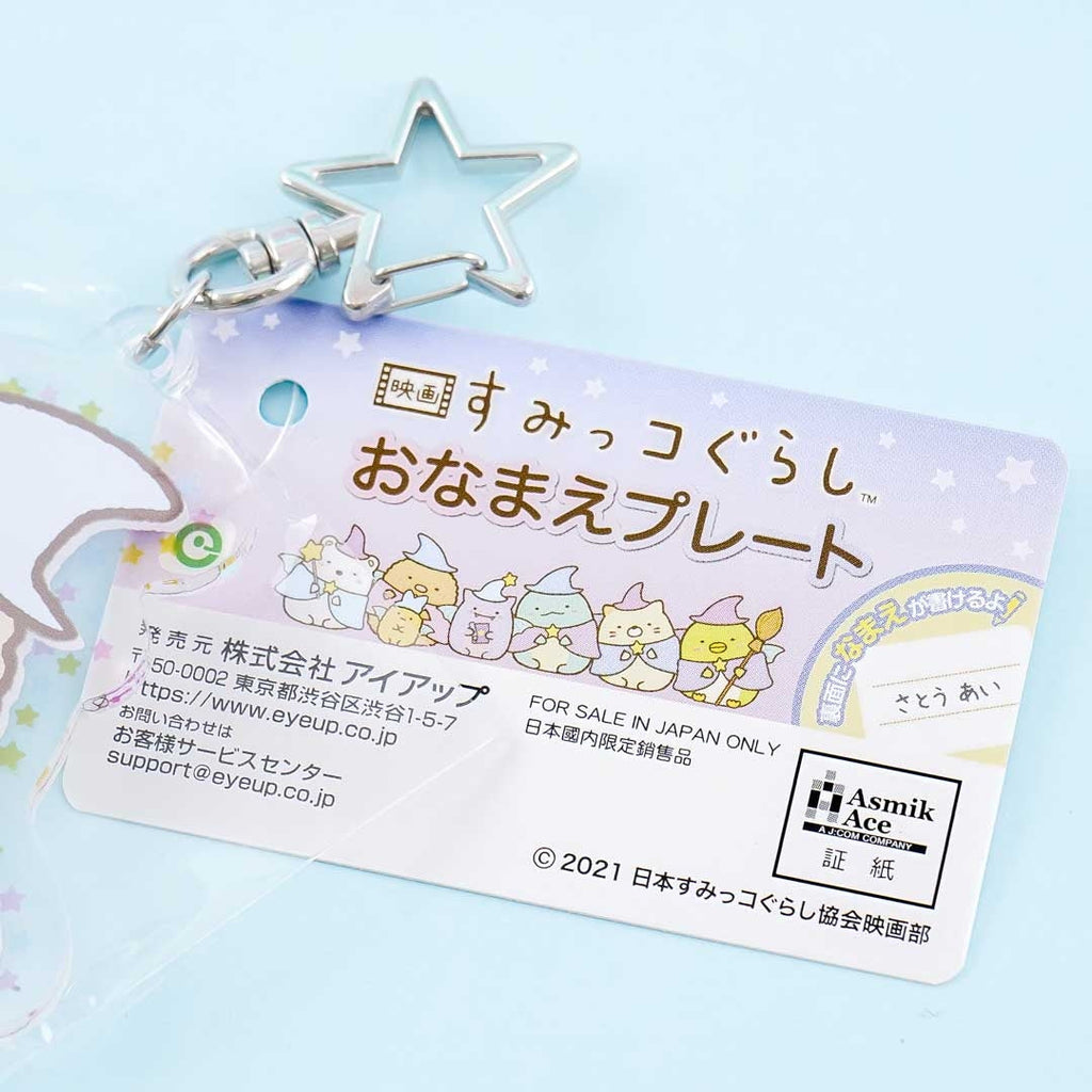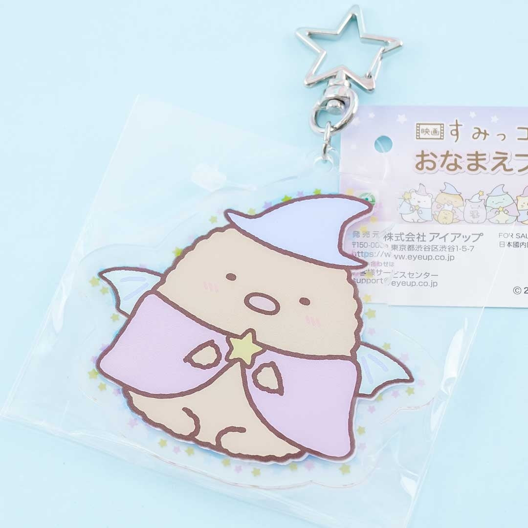 Show off your love for the Sumikko Gurashi with this cute die-cut charm featuring Tonkatsu as a wizard. You can attach this charm to your favorite bag with its star-shaped metal clip! This charm also has space on its backside where you can write your name.